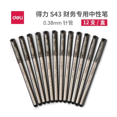 得力 S43 0.38mm 細(xì)桿簽字筆 黑色 12支/盒