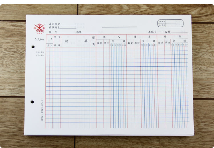 成文厚結(jié)存賬頁 乙式-504 活頁式物品材料分類帳 單位:本