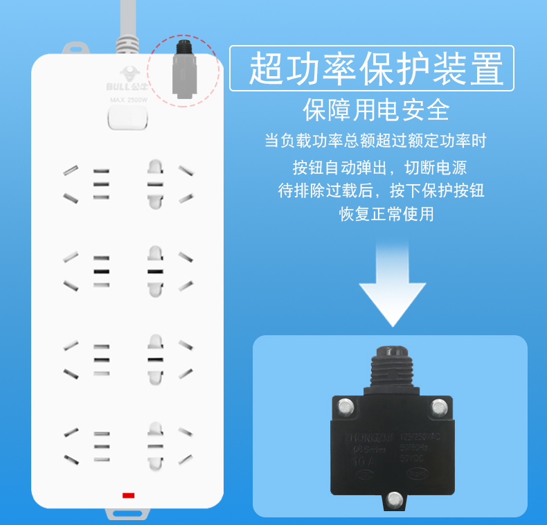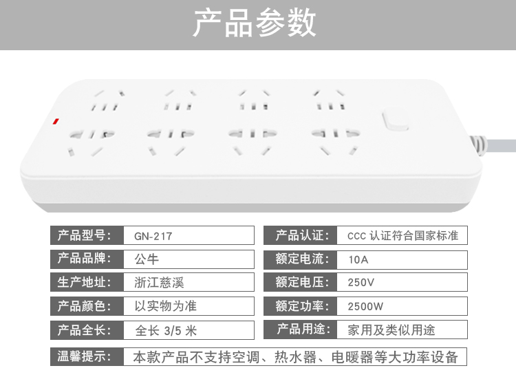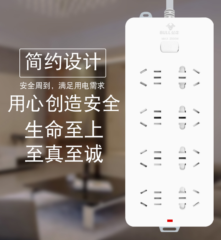 公牛插座 GN-217 5米一開8位新國標(biāo)插座 單位:個(gè)