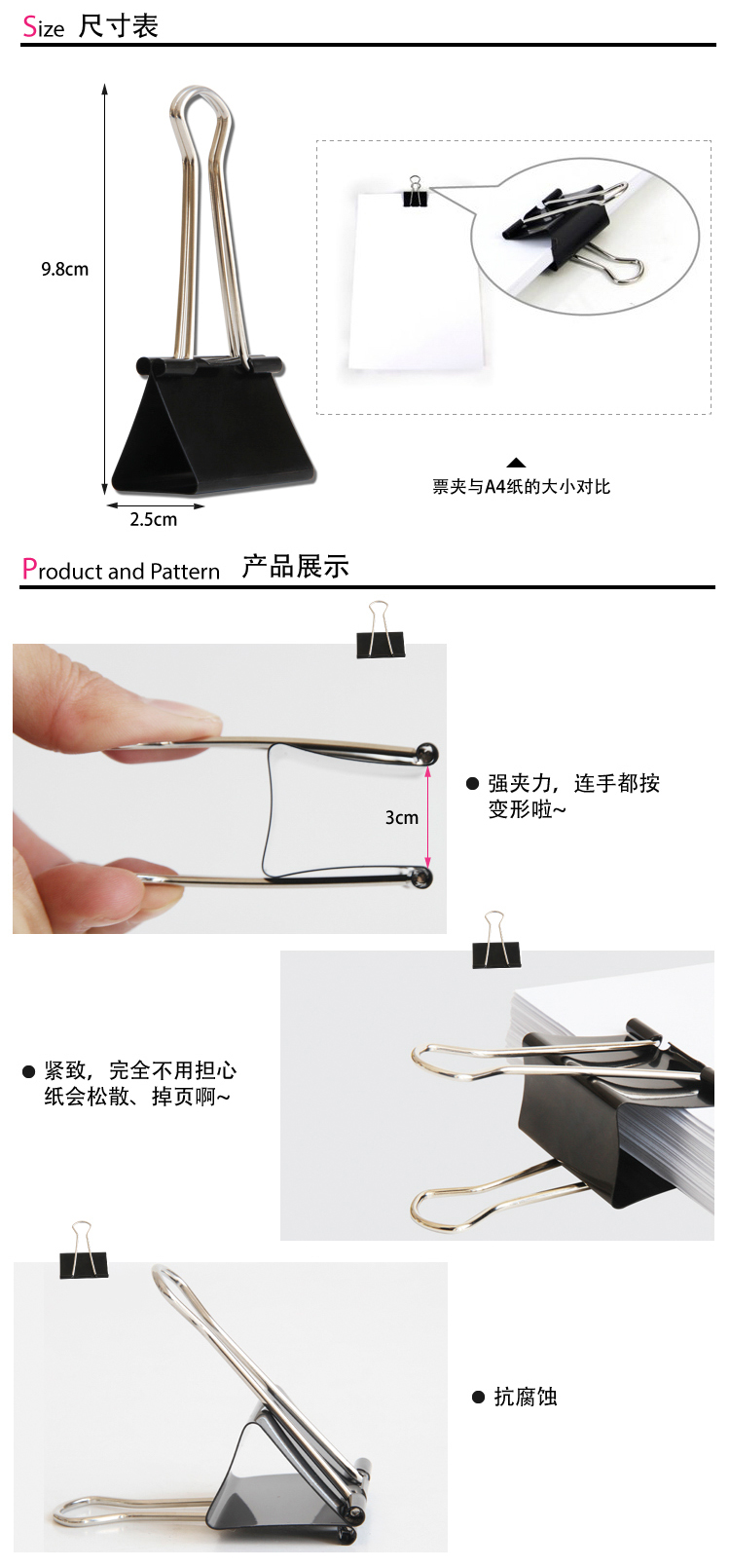 50mm黑色長尾夾票夾 金屬燕尾夾票據(jù)夾子 辦公用品 12只/筒