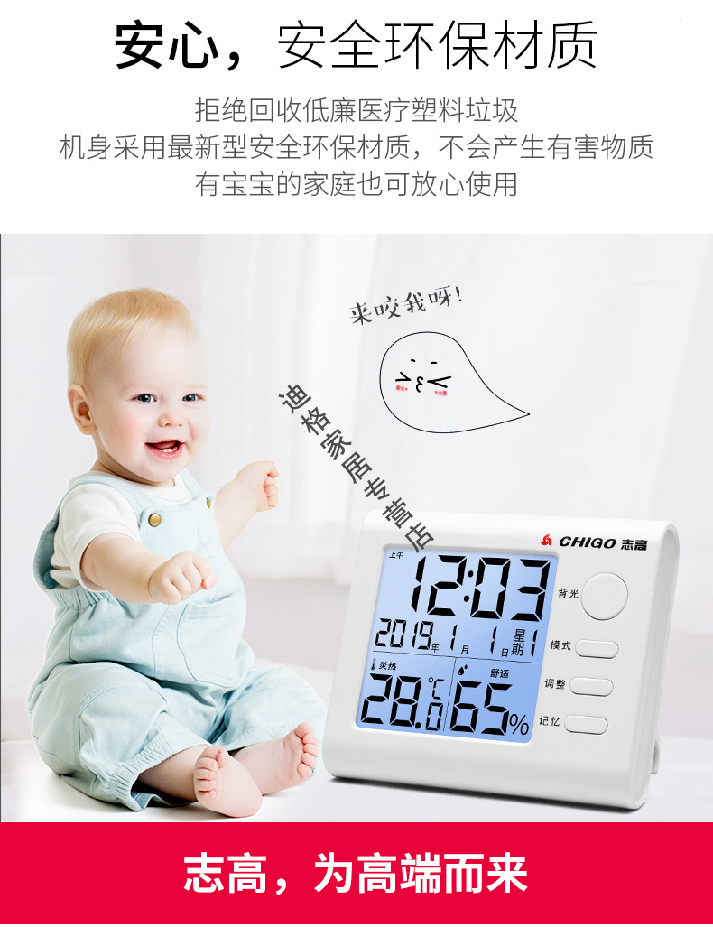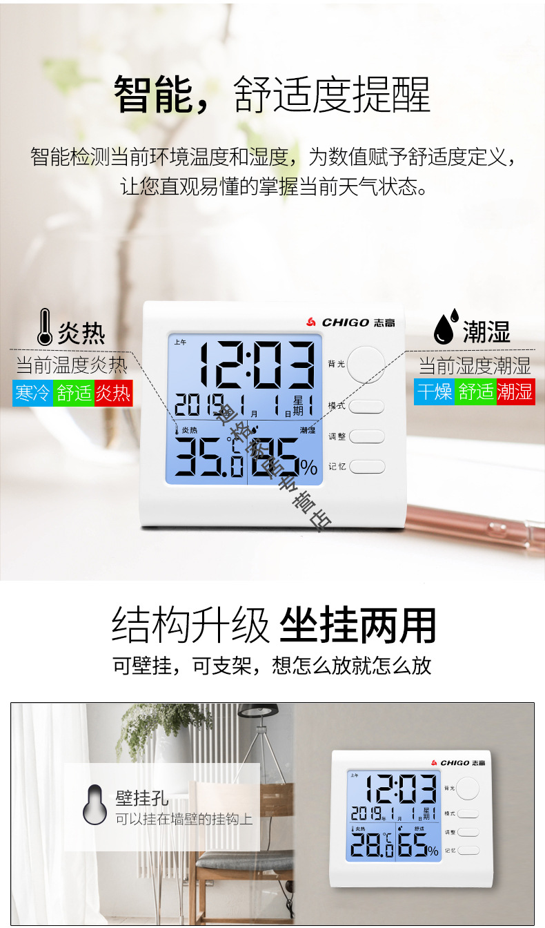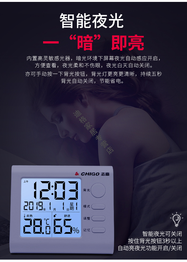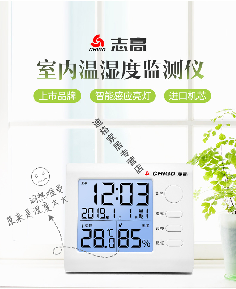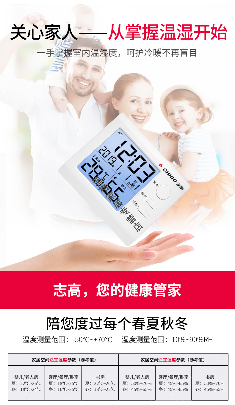 志高溫濕度計 ZG-8012 室內(nèi)高精度溫濕度計燈光版 單位:個