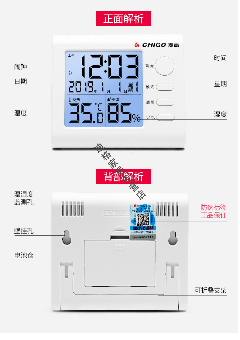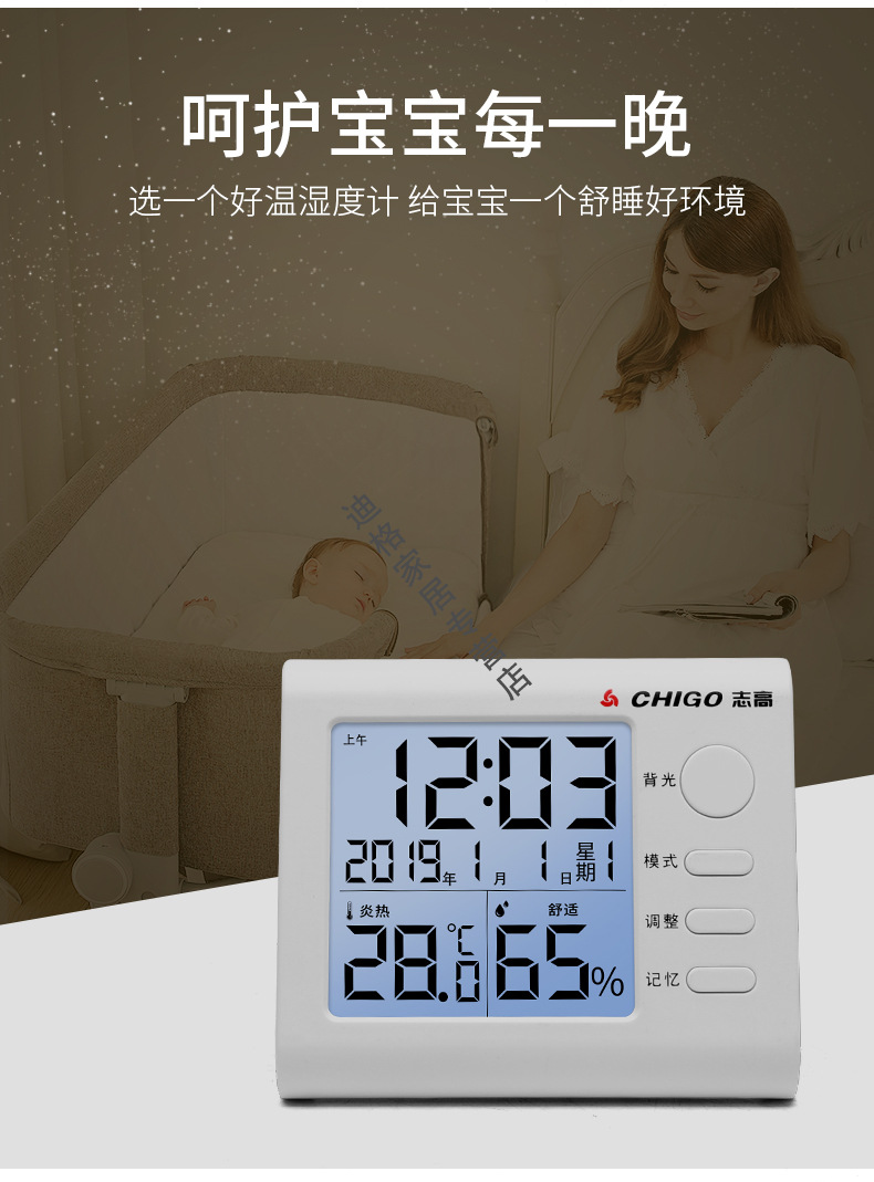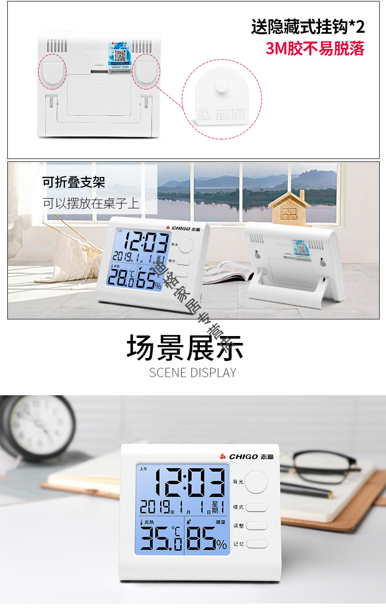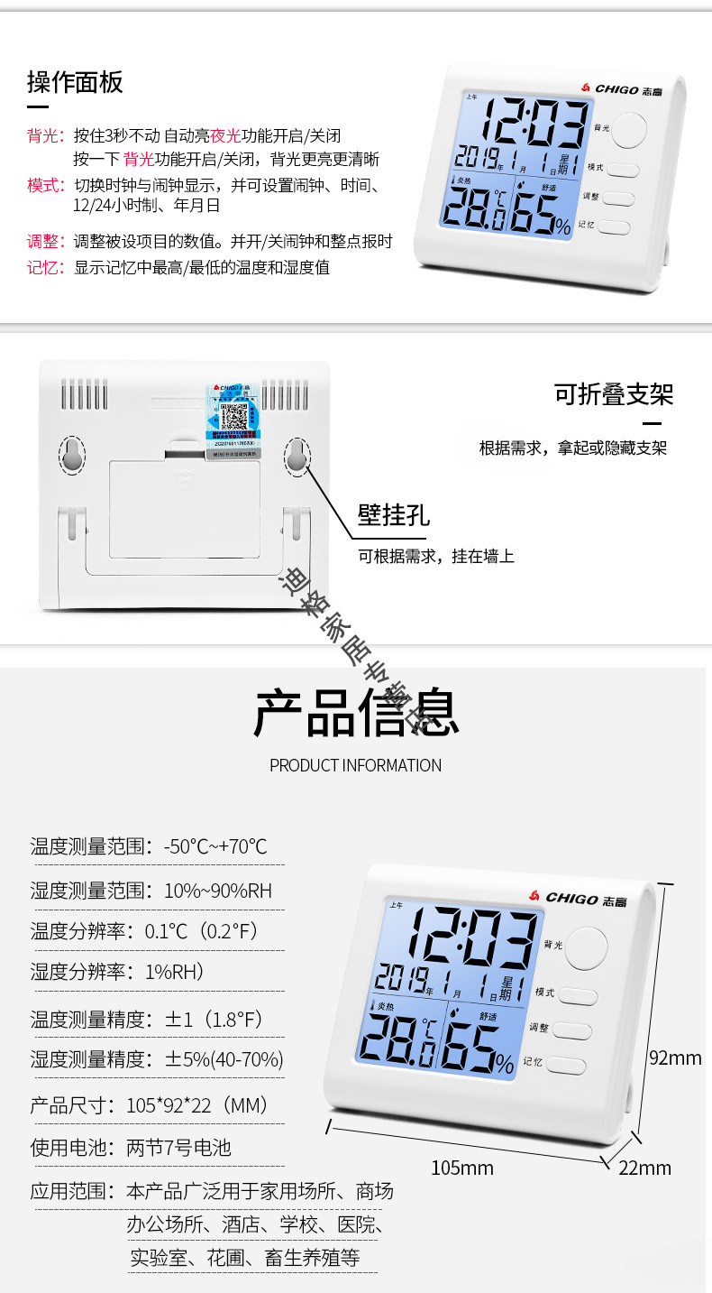 志高溫濕度計 ZG-8012 室內(nèi)高精度溫濕度計燈光版 單位:個