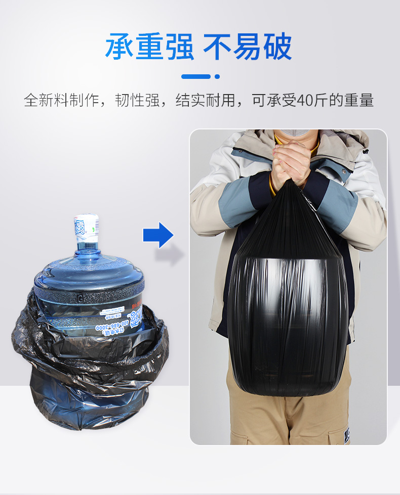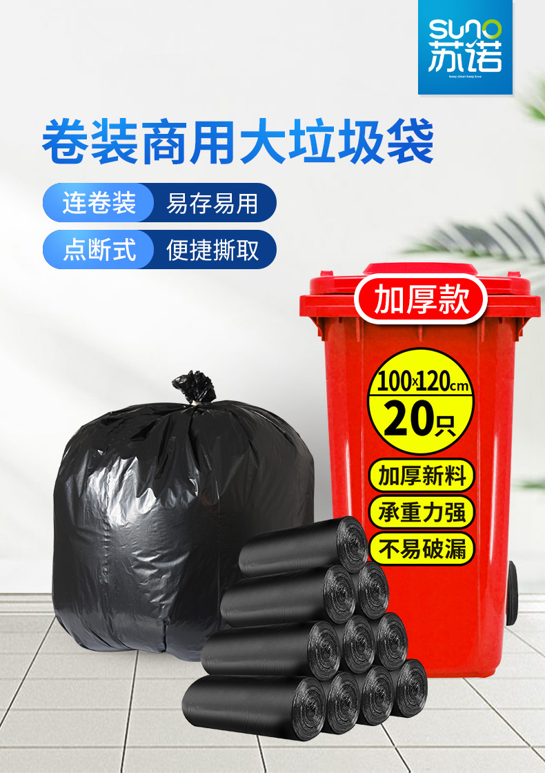 一順 100*120cm 垃圾袋大號平口加厚黑色家用廚房清潔袋桶用 垃圾分類 20只裝卷裝