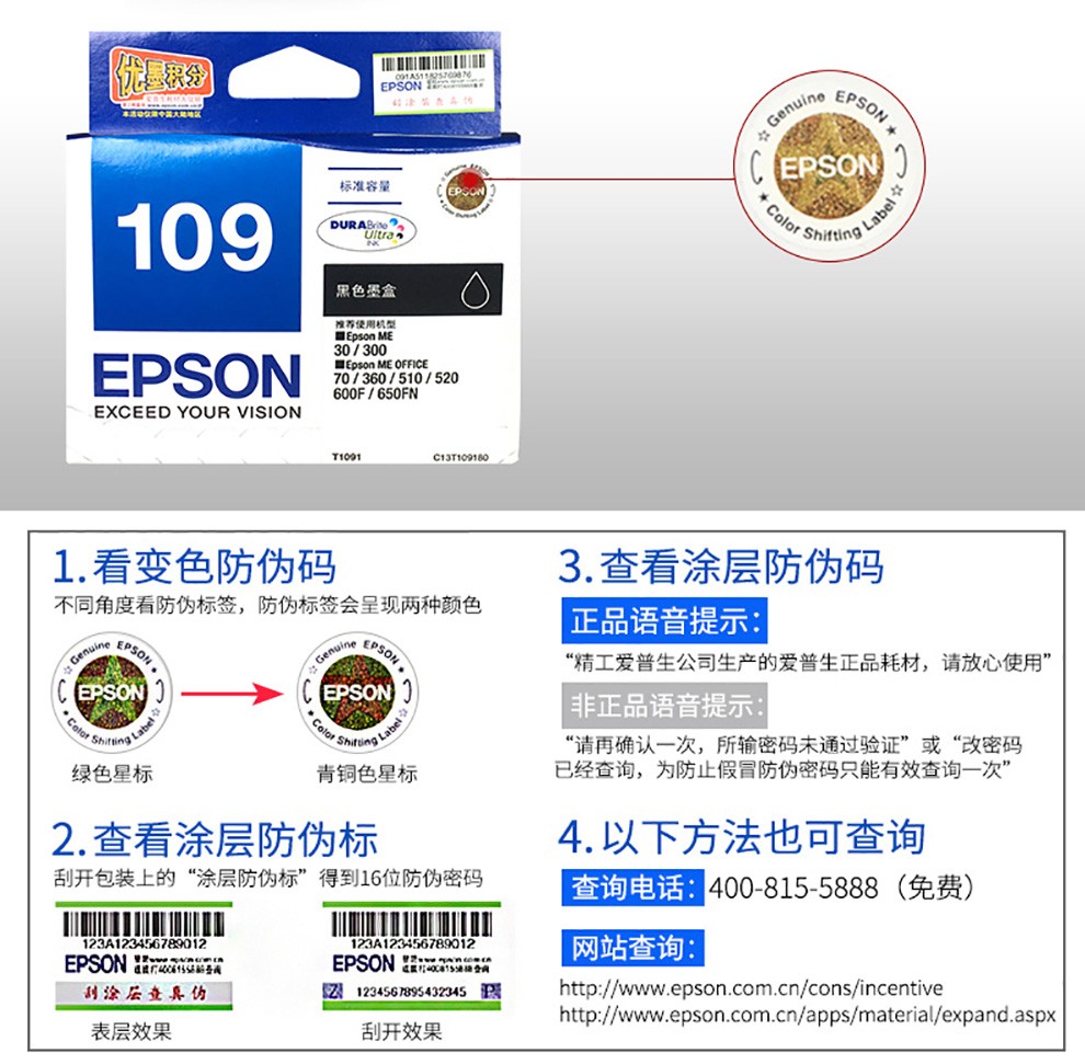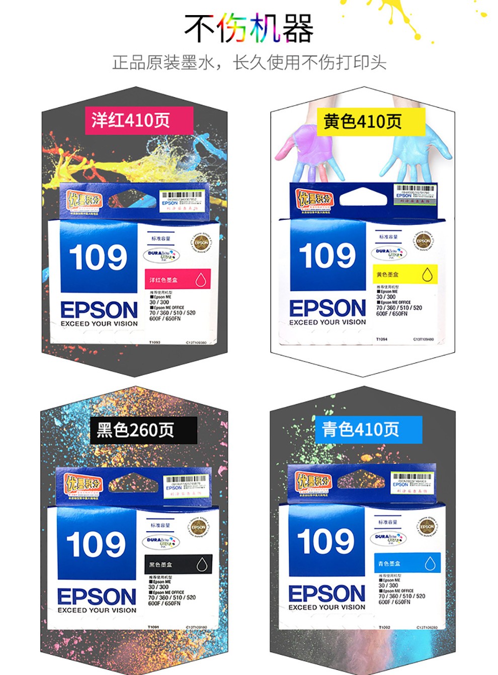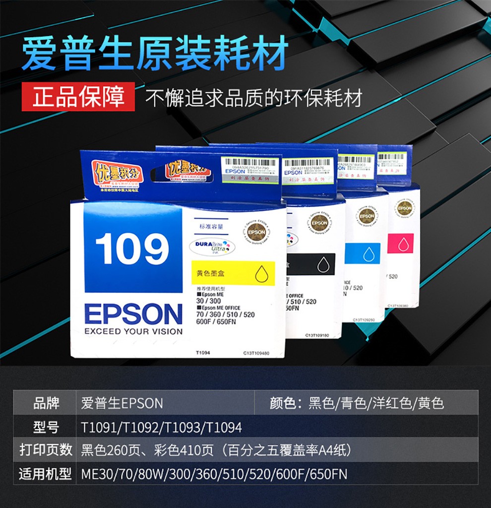 愛普生墨盒 T1094 黃色墨盒 適用ME30/300/360/510/600F/650FN/700FW 單位:支