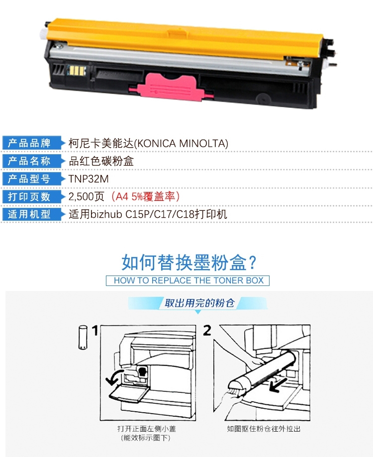 柯尼卡美能達(dá) TNP32 紅色碳粉 適用bizhub C15P/C17/C18打印機(jī) 單位:支