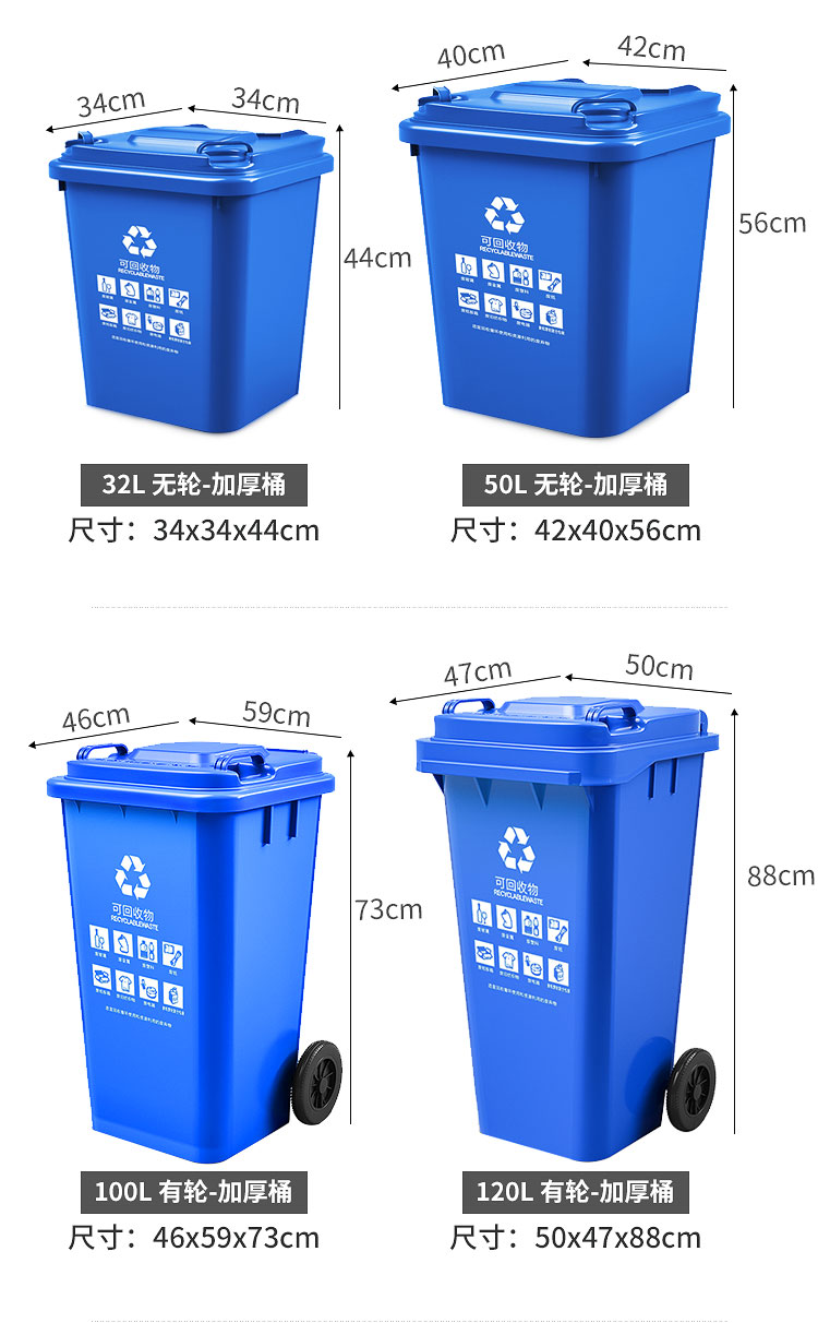舒蔻 240L可掛車(chē)帶輪 藍(lán)色 可回收垃圾桶 物業(yè)環(huán)衛(wèi)垃圾分類(lèi)商用帶蓋分類(lèi)垃圾桶果皮箱 單個(gè)裝