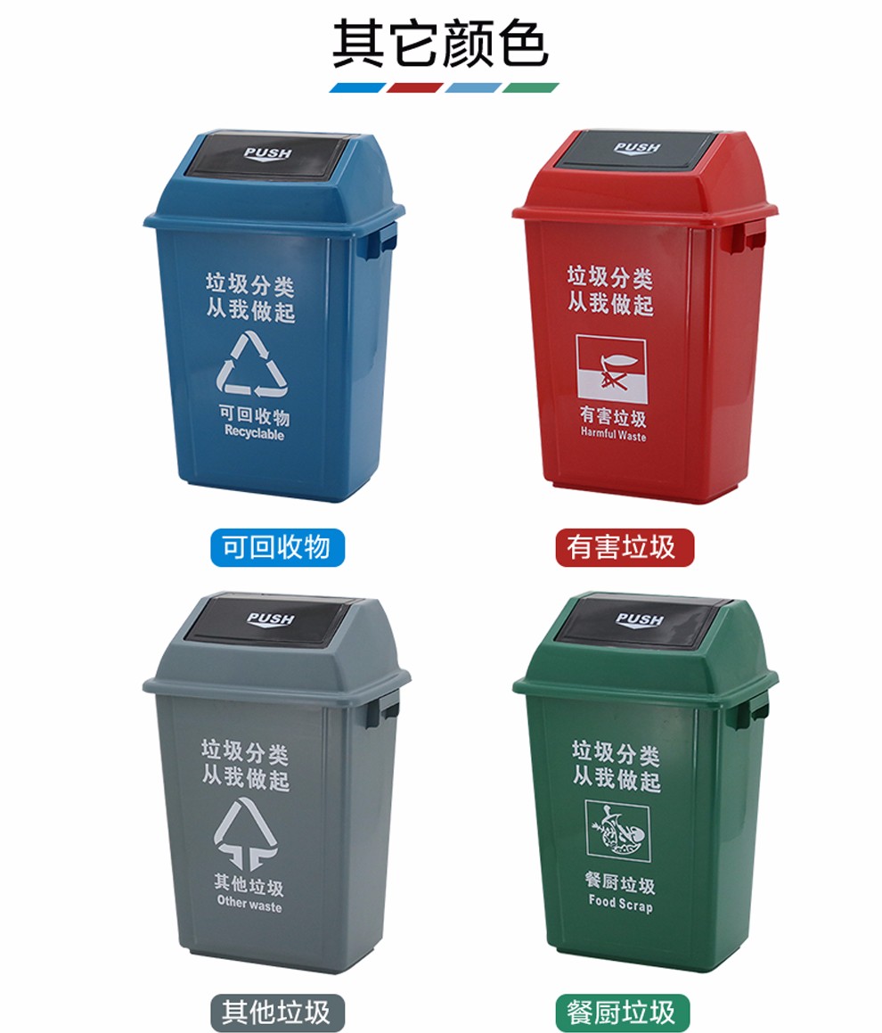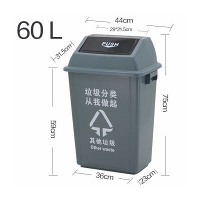 科靈 60L搖蓋 灰色 其他垃圾分類(lèi)垃圾桶帶蓋 飯店餐飲可回收廚余環(huán)衛(wèi)有害戶外四分類(lèi) 單個(gè)裝
