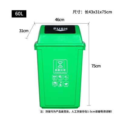 納麗雅 60L搖蓋 綠色 廚余垃圾分類垃圾桶帶蓋 飯店餐飲可回收廚余環(huán)衛(wèi)有害戶外四分類 單個裝