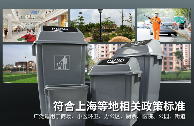 和一 60L搖蓋 灰色 垃圾桶 彈蓋酒店廚房分類垃圾筒箱戶外帶蓋204060L長方形干濕分離 單個(gè)裝
