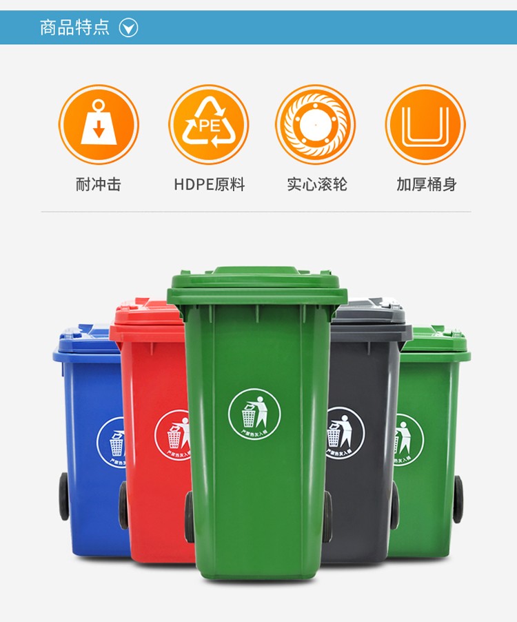 蘭詩 240L帶輪 藍(lán)色 可回收垃圾桶 物業(yè)環(huán)衛(wèi)垃圾分類商用帶蓋分類垃圾桶果皮箱 單個裝