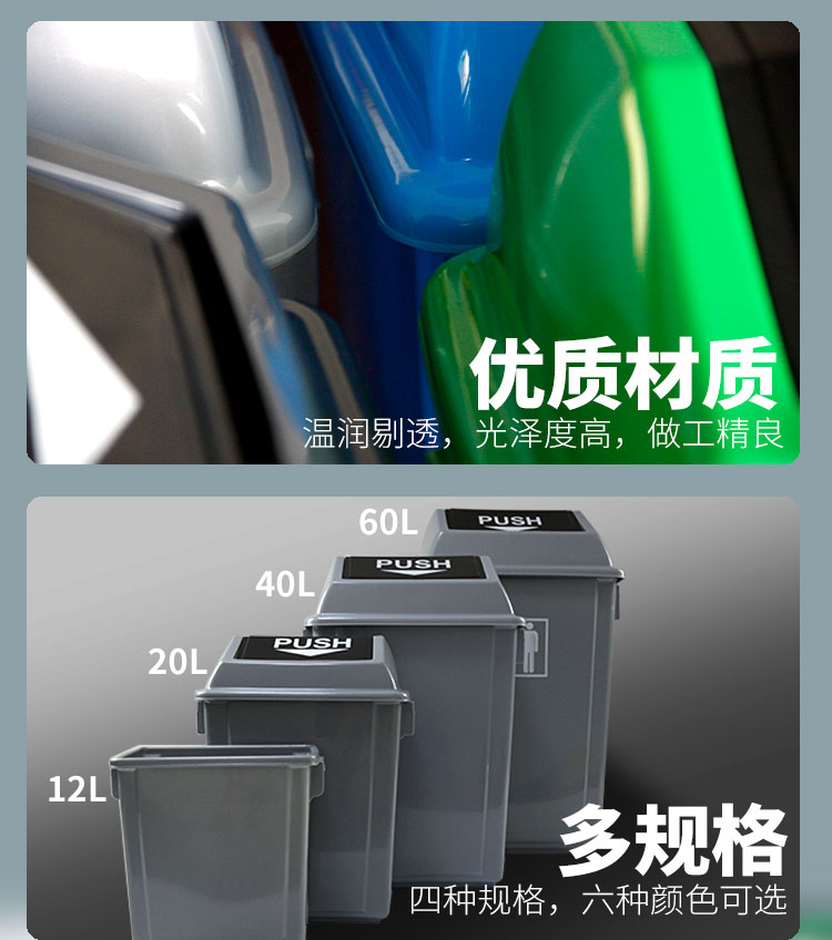 和一 20L搖蓋 藍色 垃圾桶 彈蓋酒店廚房分類垃圾筒箱戶外帶蓋204060L長方形干濕分離 單個裝