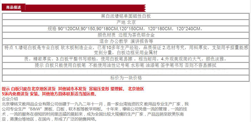 壕銘白板 501 45*60磁性白板 單面 單位:塊