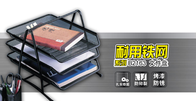 齊心文件盤 B2163 耐用鐵網(wǎng)文件盤 三層 黑色 單位:個(gè)