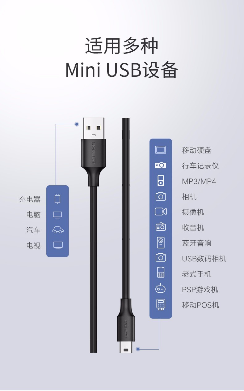 綠聯(lián) US132 USB2.0轉(zhuǎn)Mini USB數(shù)據(jù)線 T型口充電連接線 0.5米 黑色 單位:根