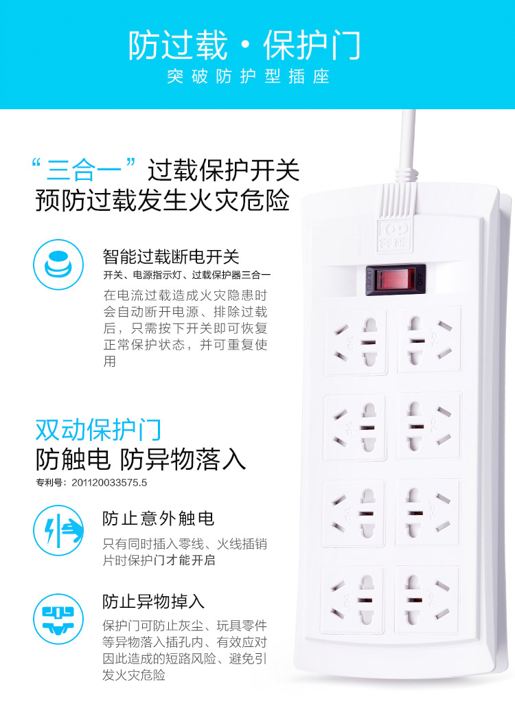 突破插座 D1K8 3米一開8位總控插座 單位:個