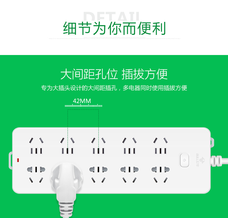公牛插座 GN-218 5米10位電源插座 單位:個(gè)