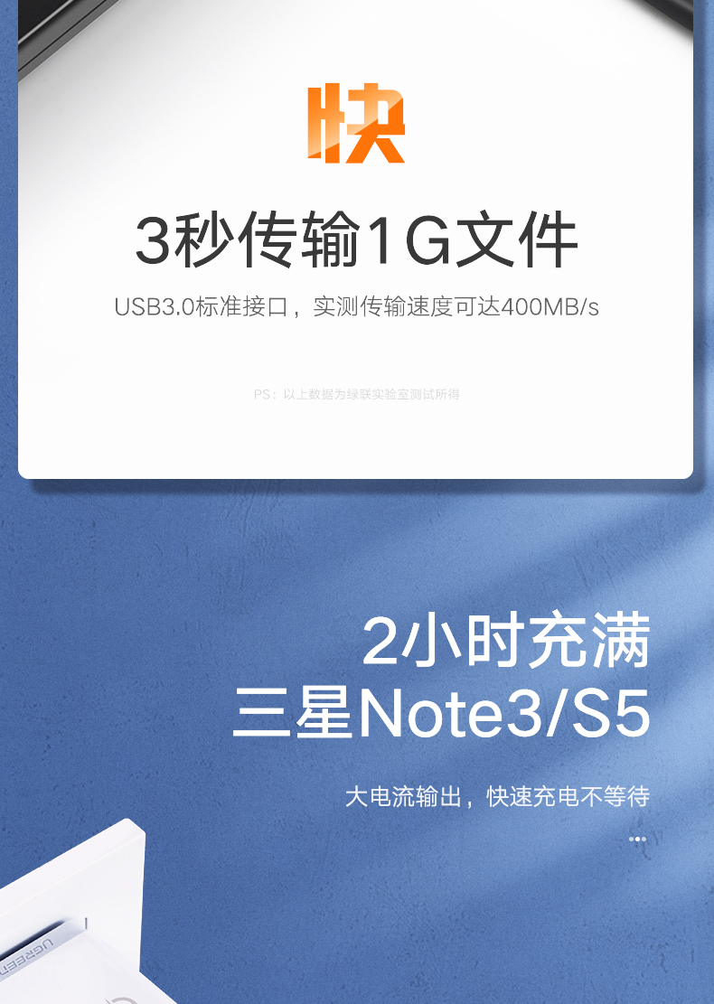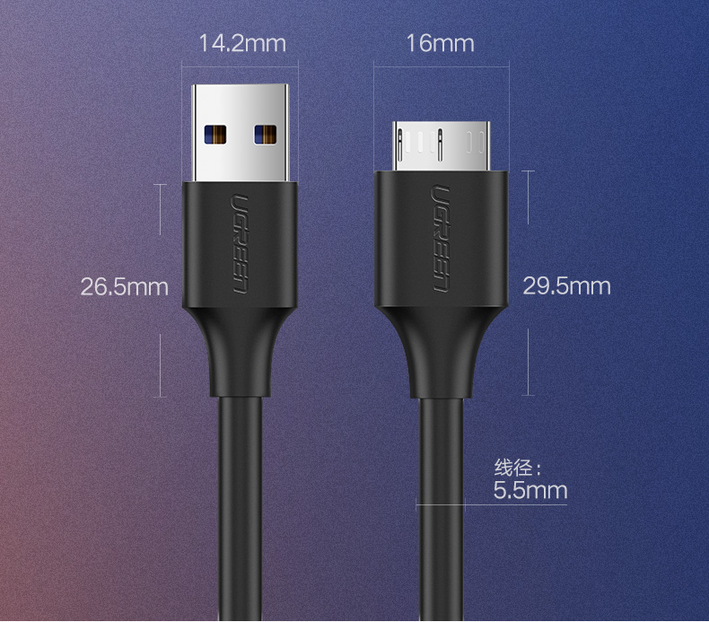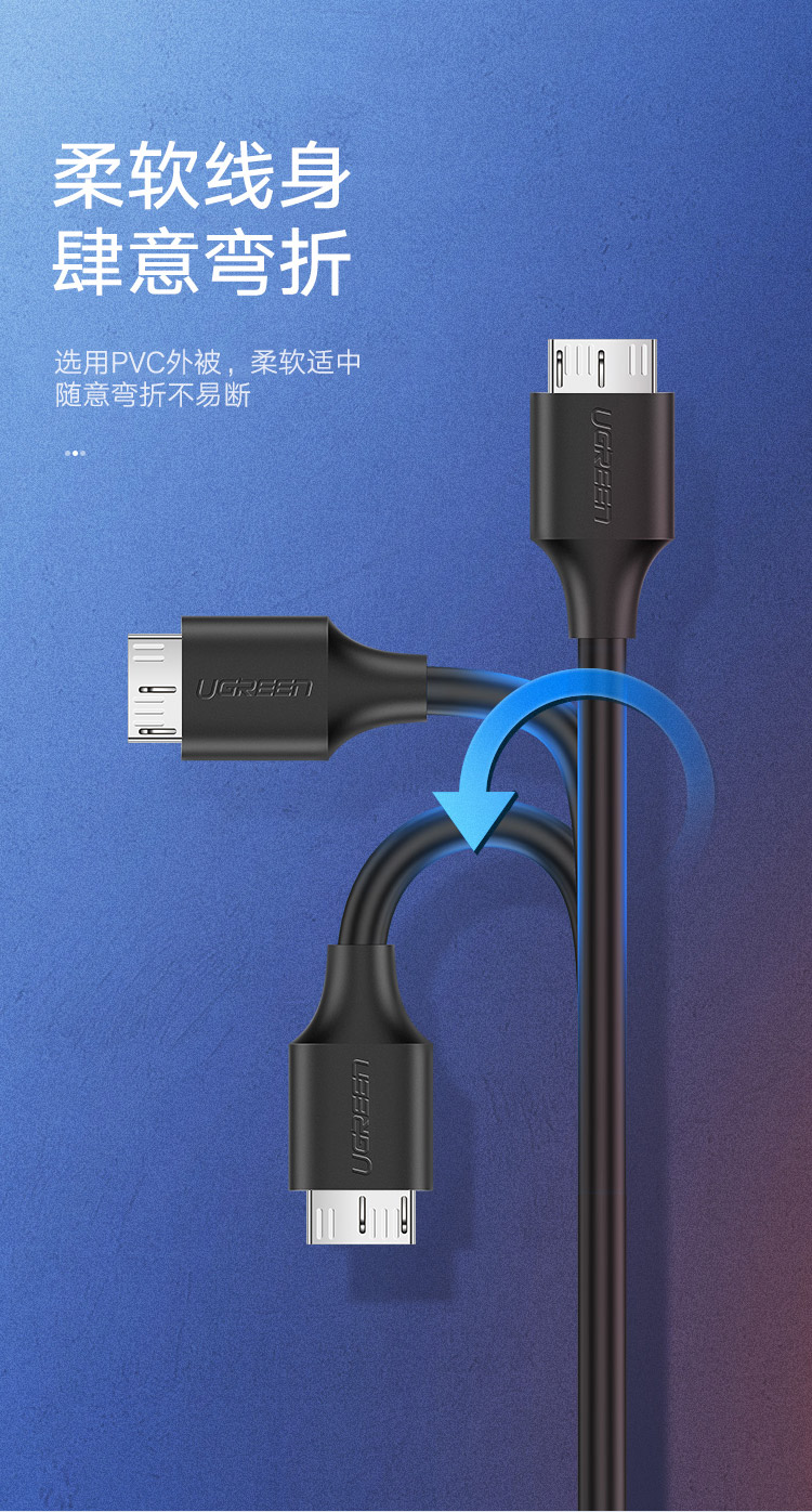 綠聯(lián) US130 移動(dòng)硬盤數(shù)據(jù)連接線 Micro USB3.0高速傳輸 0.5米 黑色 單位:根