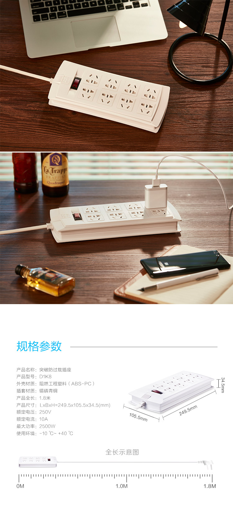 突破插座 D1K8 10米一開(kāi)8位總控插座 單位:個(gè)