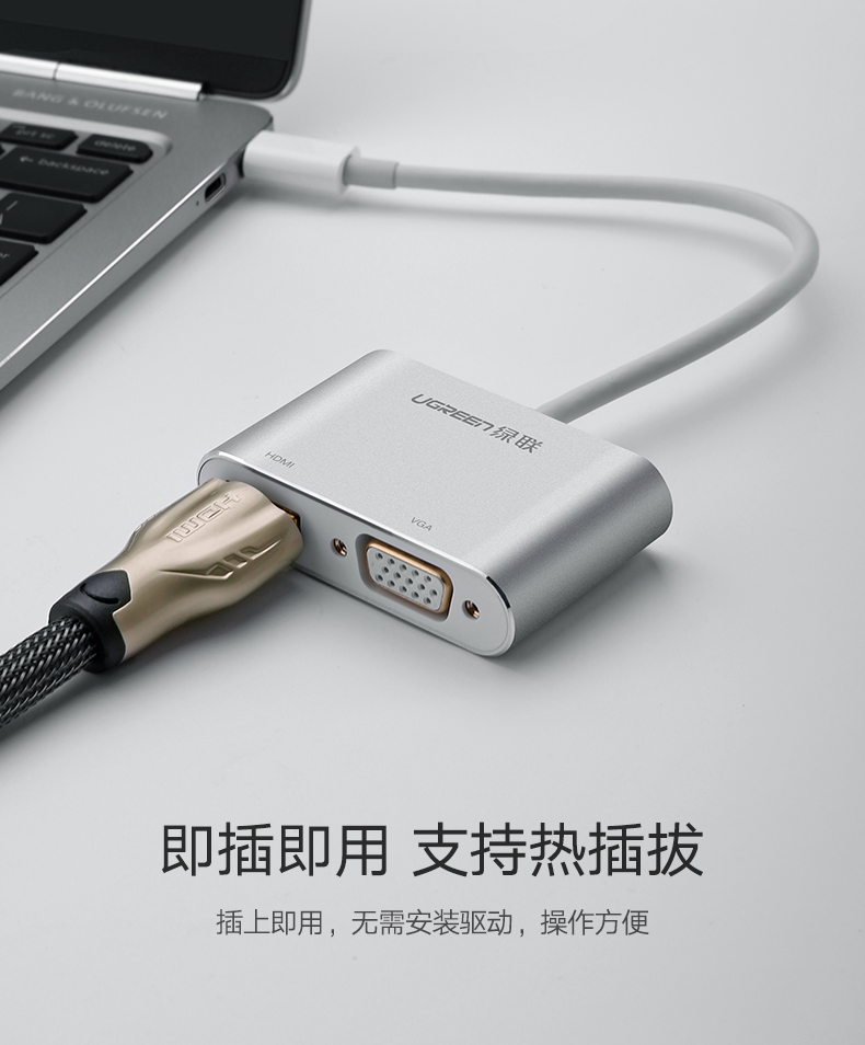 綠聯(lián) CM162 Type-C轉(zhuǎn)HDMI+VGA 轉(zhuǎn)換器鋁殼款器電腦筆記本電視投影 鋁殼銀 灰色 單個裝