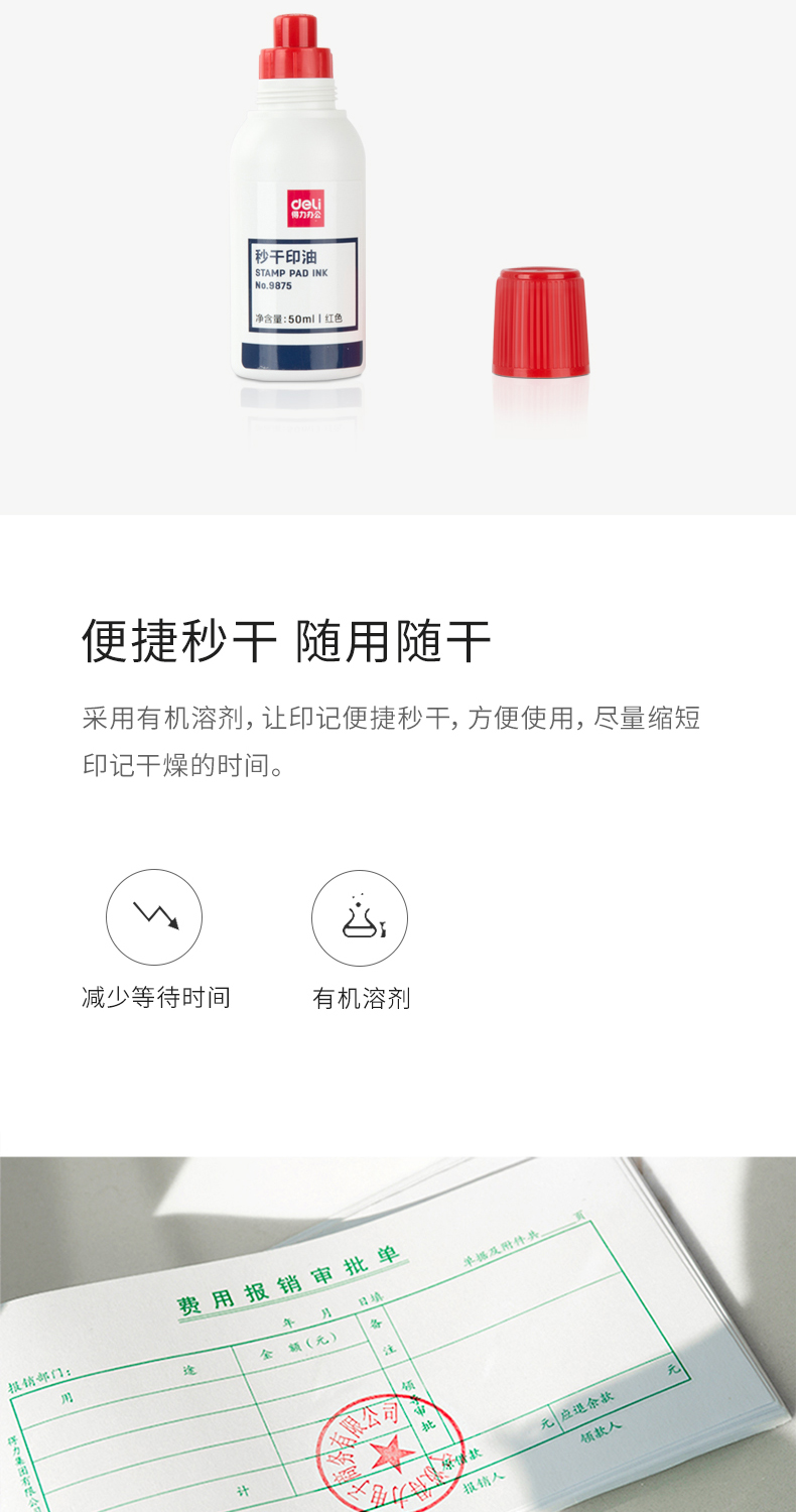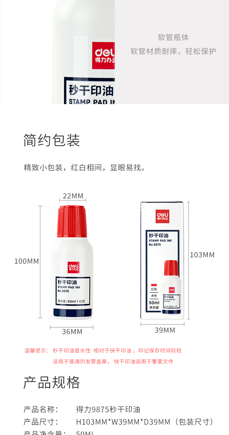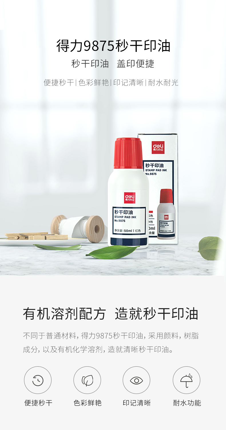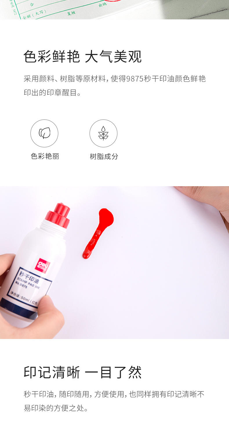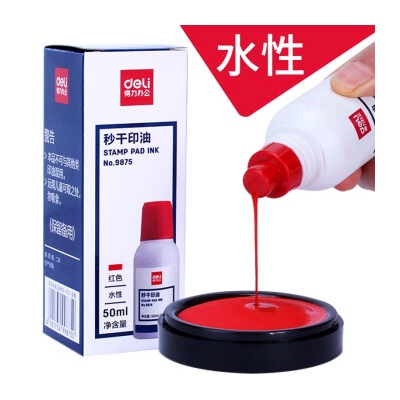 得力 9875 財務專用印油40ml快干清潔印泥油 紅色 單位:個