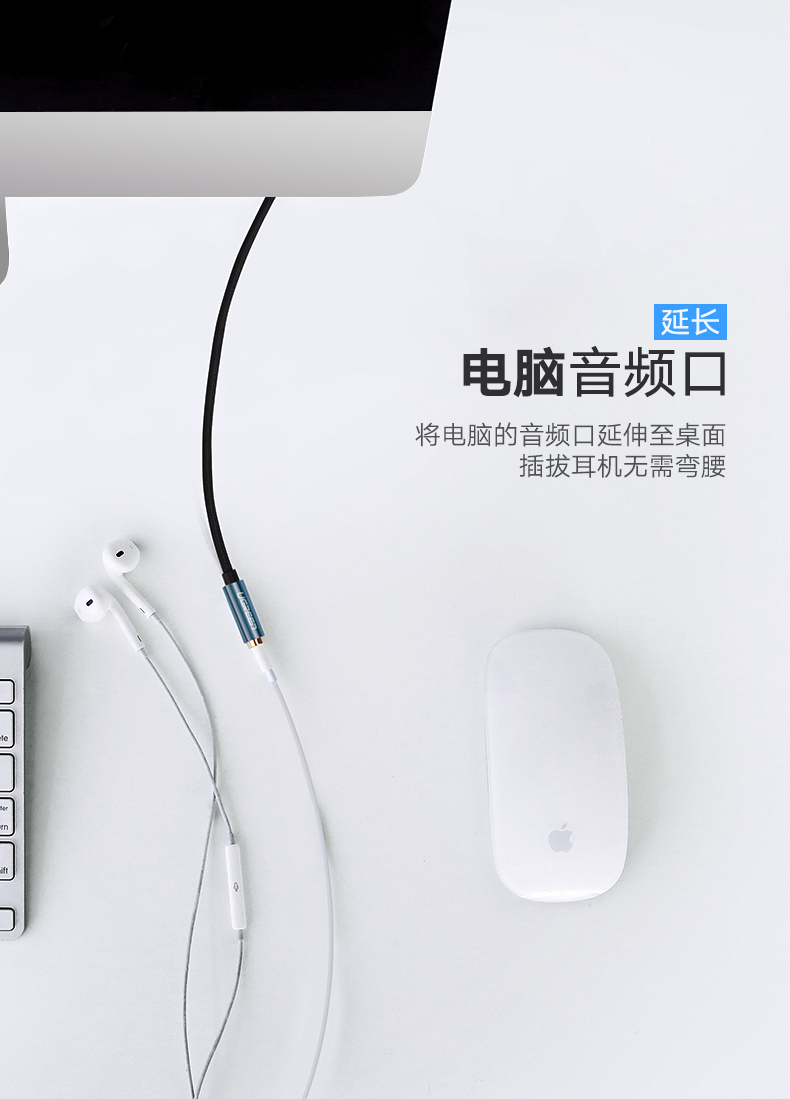 綠聯(lián) AV118 3.5mm音頻線公對母 手機(jī)平板筆記本電腦轉(zhuǎn)接AUX車載音響箱加長線 1.5米 灰色 單位:根