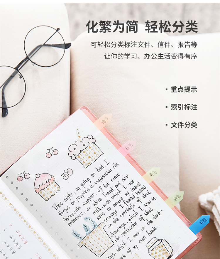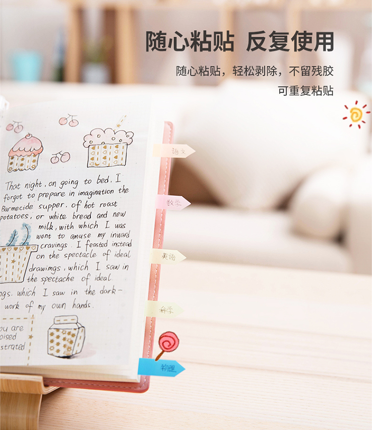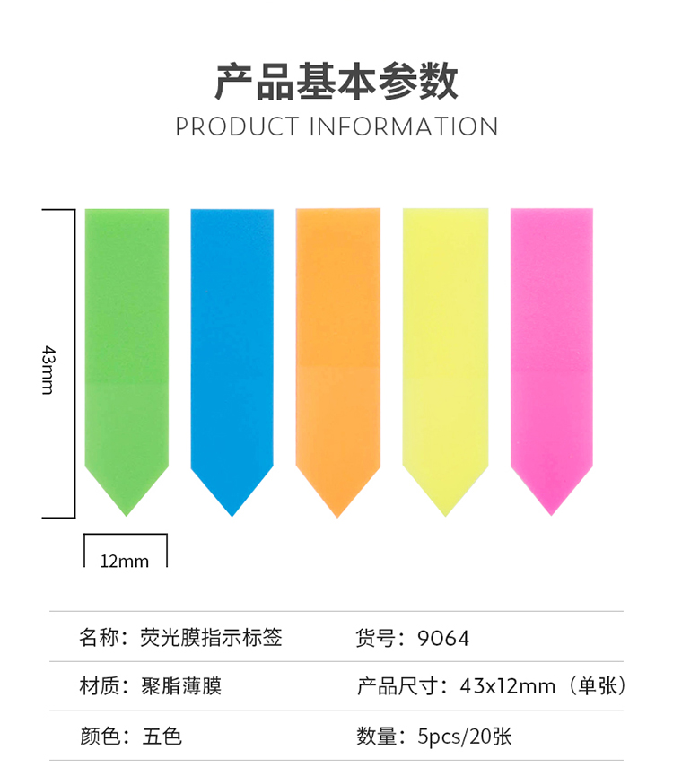 得力 9064 43*12mm5色熒光膜指示標簽貼 單位:100張/包