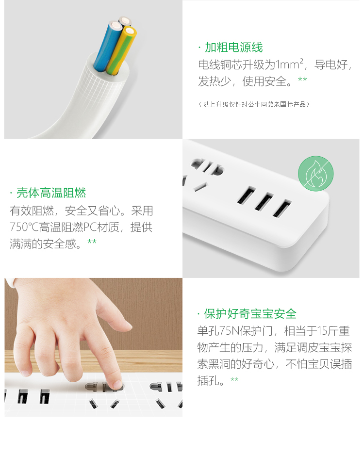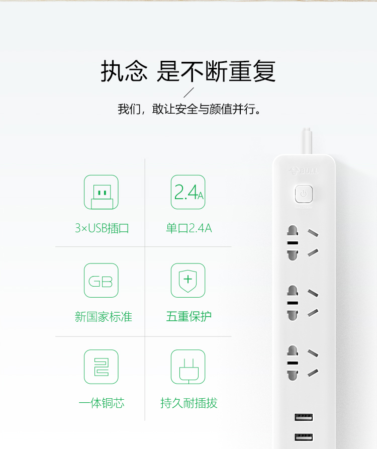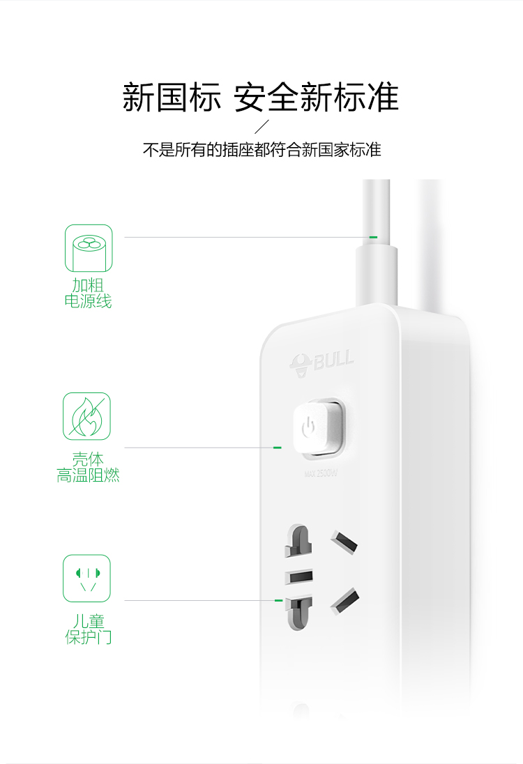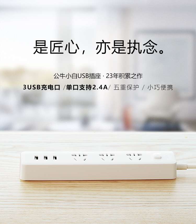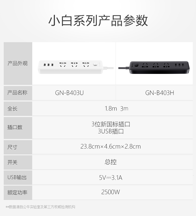 公牛插座 GN-B403U 3米3usb接口+3孔新國標USB插座 單位:個