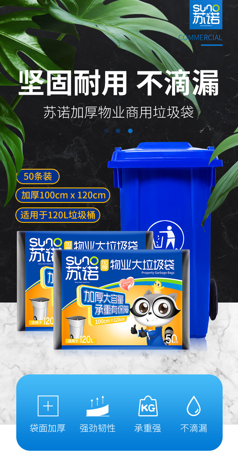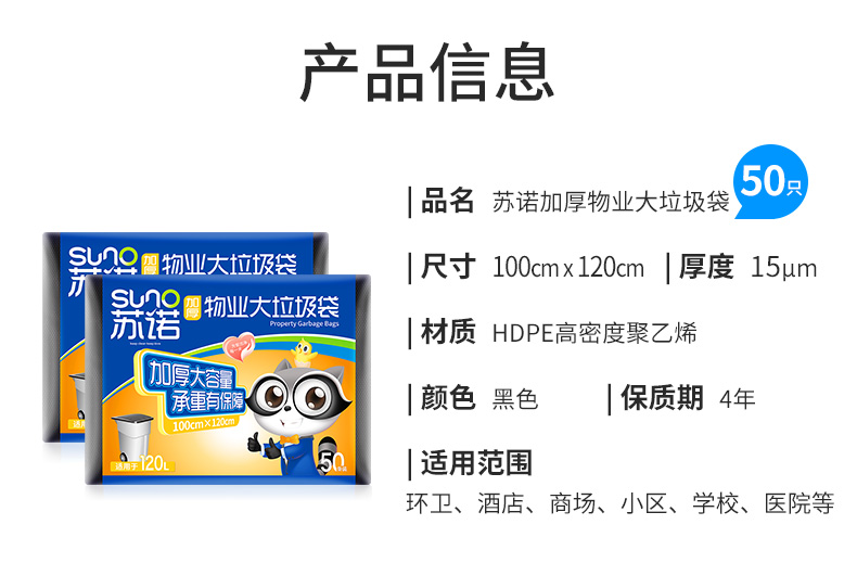一順 100*120cm 垃圾袋大號(hào)平口加厚黑色家用廚房清潔袋桶用 垃圾分類 50只裝平裝