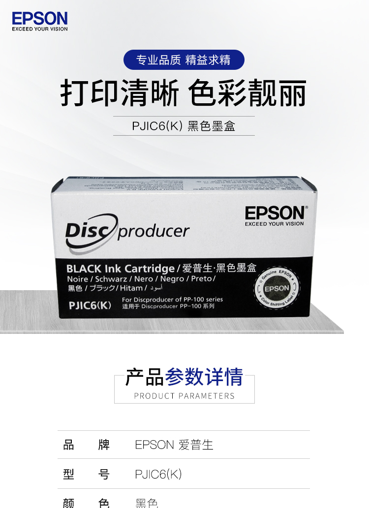 愛普生墨盒 PJIC6 黑色墨盒 (適用PP-100III/100N/50II系列光盤印刷刻錄機) 單位:支