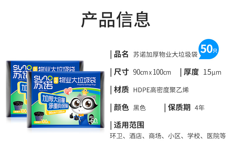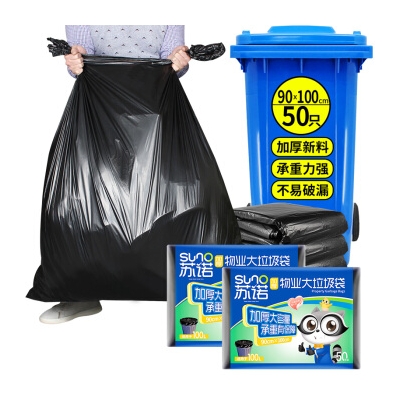 一順 90*100cm 垃圾袋大號平口加厚黑色家用廚房清潔袋桶用 垃圾分類 50只裝平裝