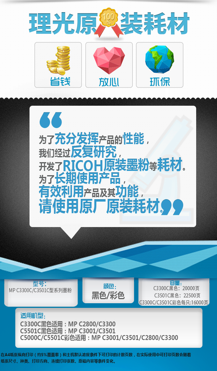理光墨粉 MPC3300C/C3501C 黃色 適用MP C3001/C3501/C2800/C3300 單位:支
