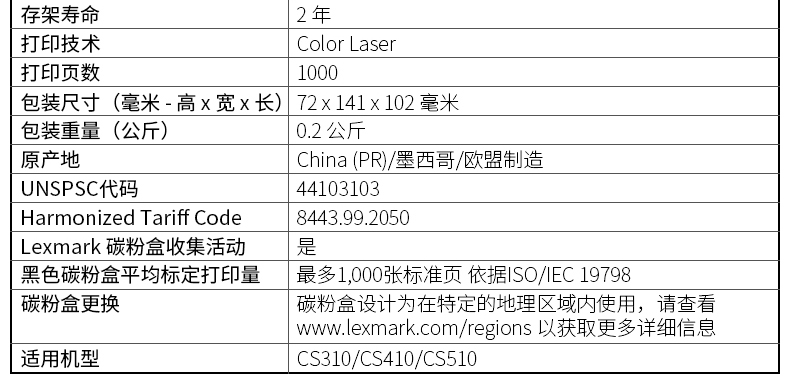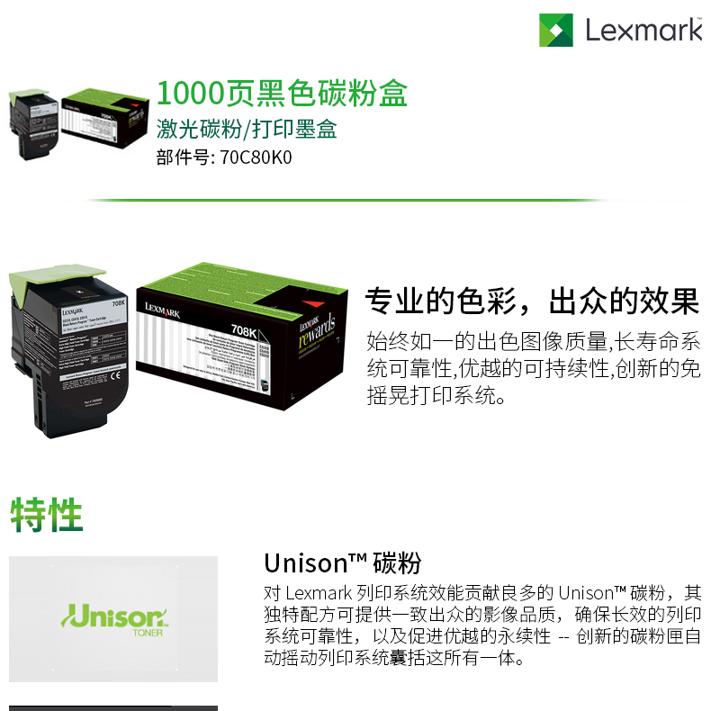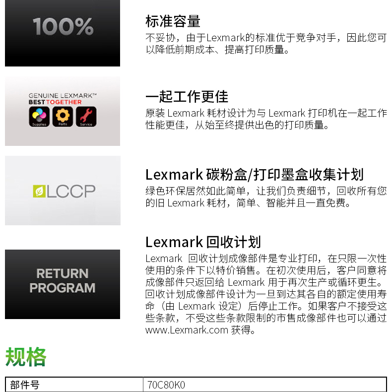 利盟 70C80K0 黑色粉盒 適用CS/310/410/510dn機(jī)型(約1000頁)