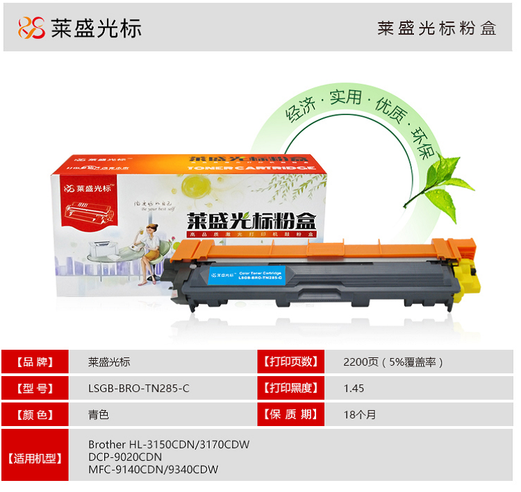 萊盛光標(biāo) LSGB-BRO-TN285-C 青色粉盒 適用:Brother HL-3150CDN/3170CDW 單位:支