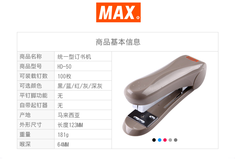 美克司訂書(shū)機(jī) HD-50 中型省力訂書(shū)機(jī)可旋轉(zhuǎn)訂板正反裝訂 黑色 單位:個(gè)