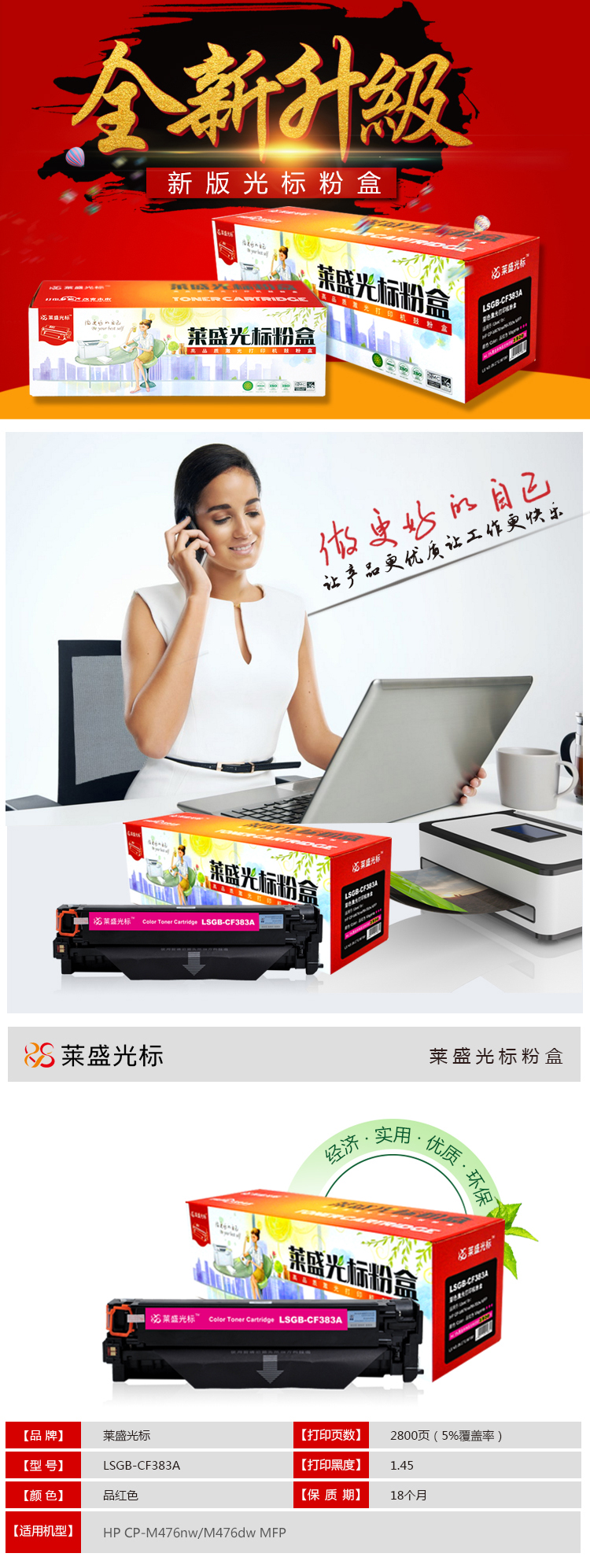 萊盛光標(biāo) LSGB-CF383A 紅色硒鼓 適用:HP Color LaserJet Pro MFP M476dw/M476 單位:支