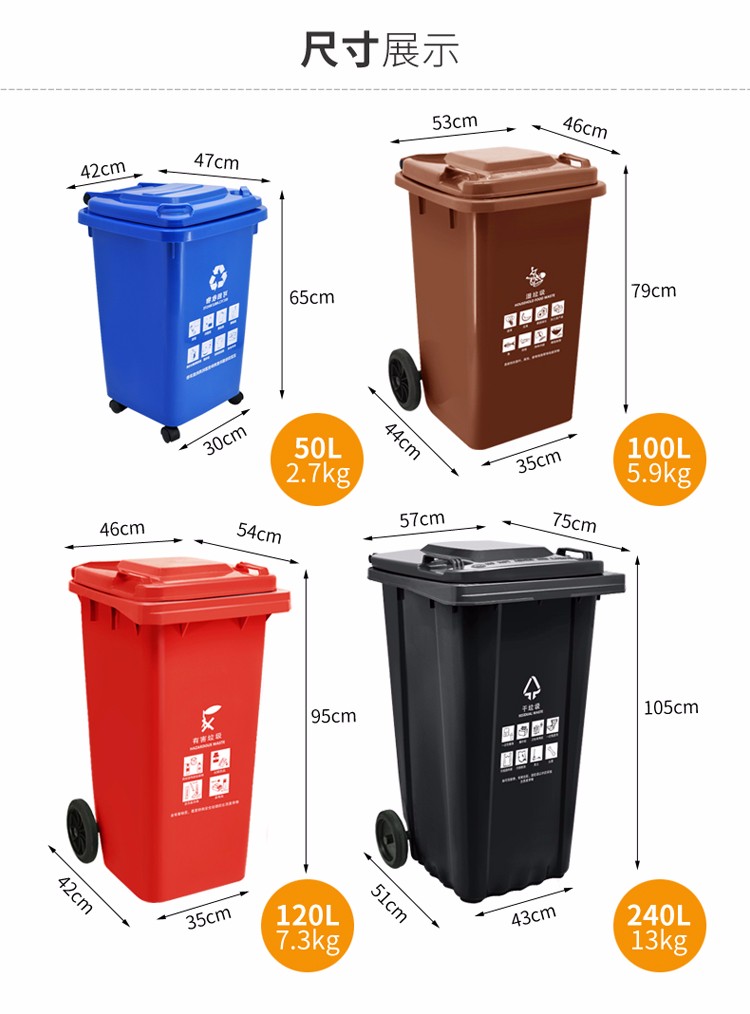 蘭詩 240L帶輪 咖啡色 濕垃圾桶 物業(yè)環(huán)衛(wèi)垃圾分類商用帶蓋分類垃圾桶果皮箱 單個(gè)裝