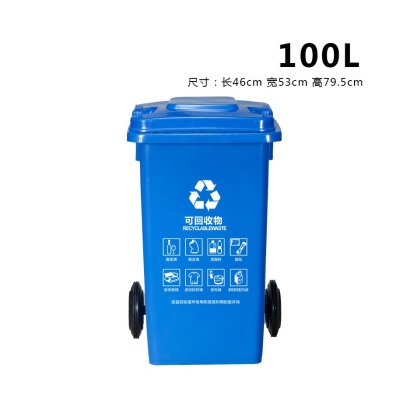 ABEPC 100L帶輪 藍(lán)色 可回收垃圾桶 物業(yè)環(huán)衛(wèi)垃圾分類(lèi)商用帶蓋分類(lèi)垃圾桶果皮箱 單個(gè)裝