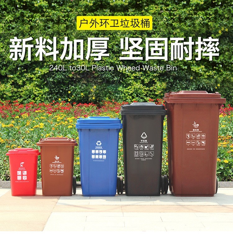 納麗雅 120L帶輪 藍(lán)色 可回收垃圾桶 物業(yè)環(huán)衛(wèi)垃圾分類商用帶蓋分類垃圾桶果皮箱 單個(gè)裝