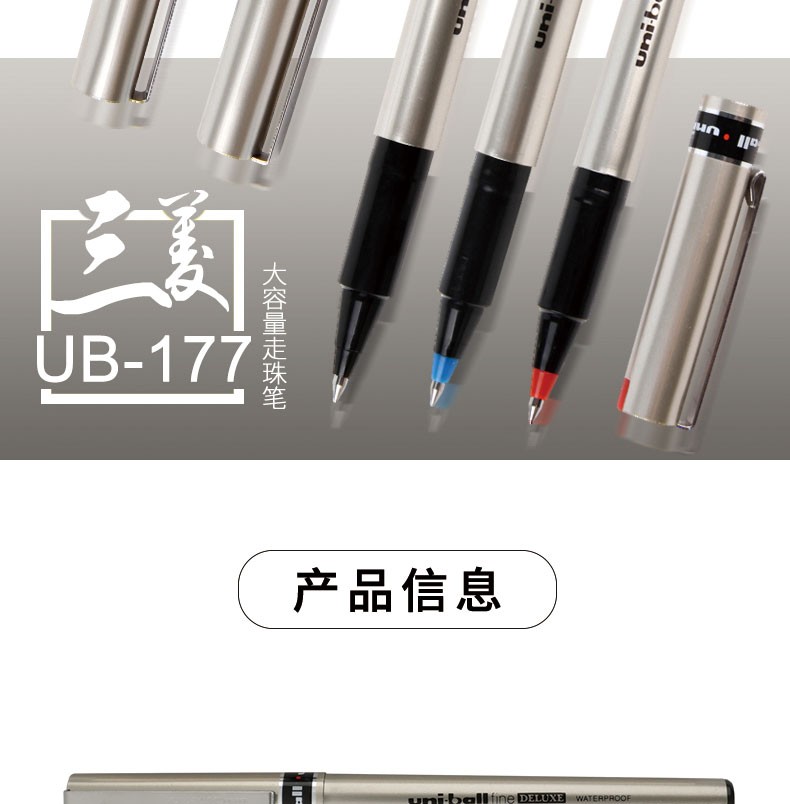 三菱 UB-177 0.7mm 中性筆簽紙筆 藍色 單支裝