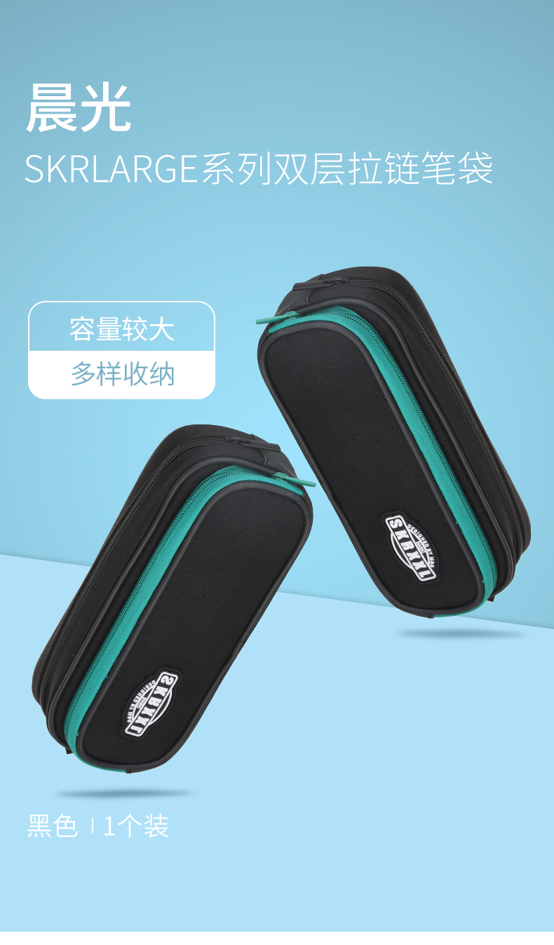 晨光筆袋 APBN3840 SKRLARGE系列雙層拉鏈筆袋黑色 單位:個(gè)