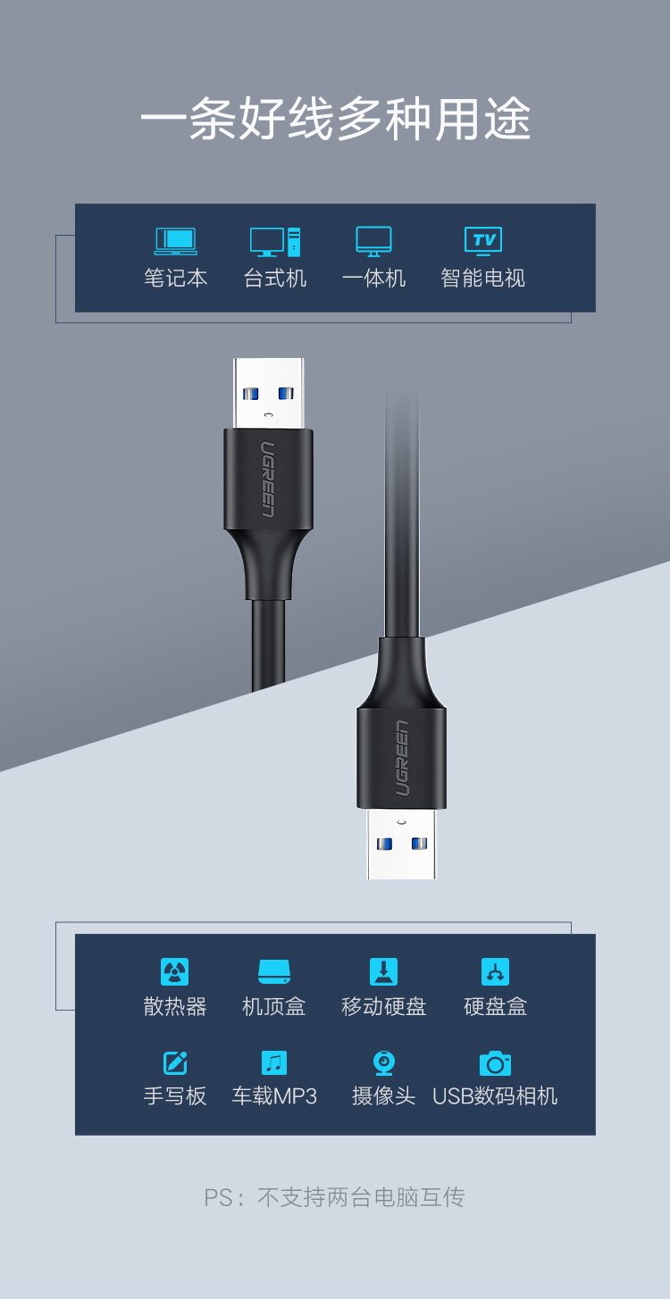 綠聯(lián) US128 USB3.0數(shù)據(jù)線公對(duì)公 雙頭移動(dòng)硬盤盒高速傳輸連接線 1米 黑色 單位:根
