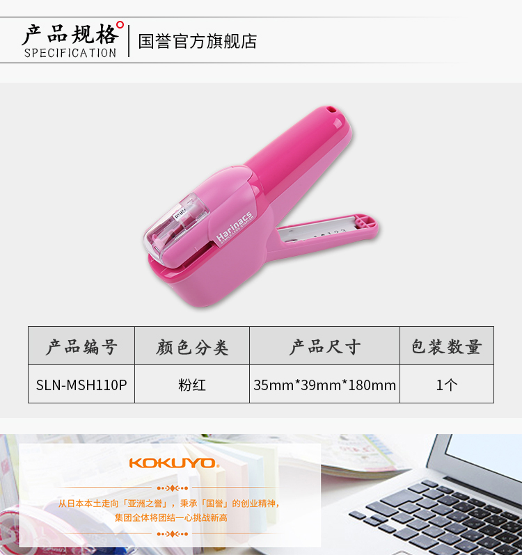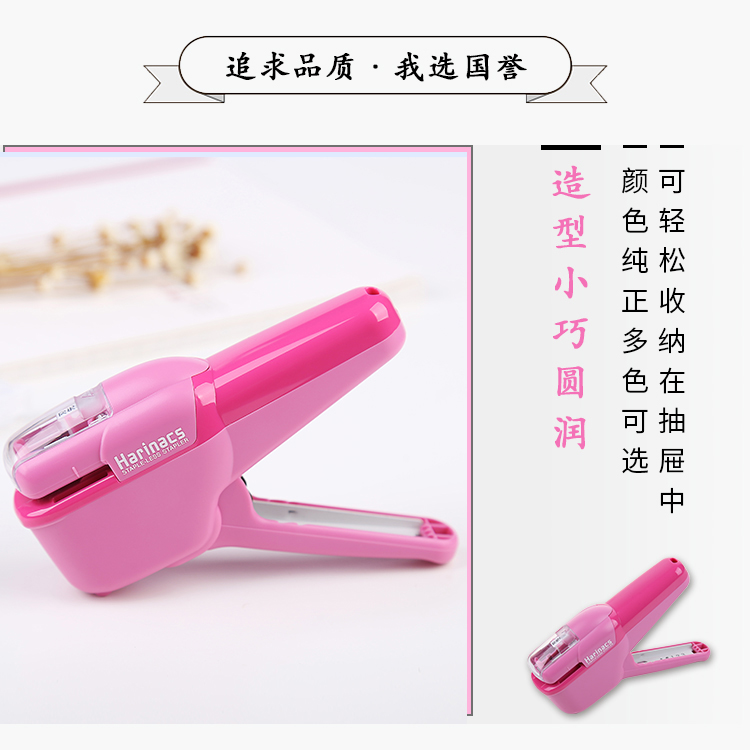 日本國譽 3653 學生辦公便攜式環(huán)保無針訂書機 10枚裝訂 綠色 單位:個