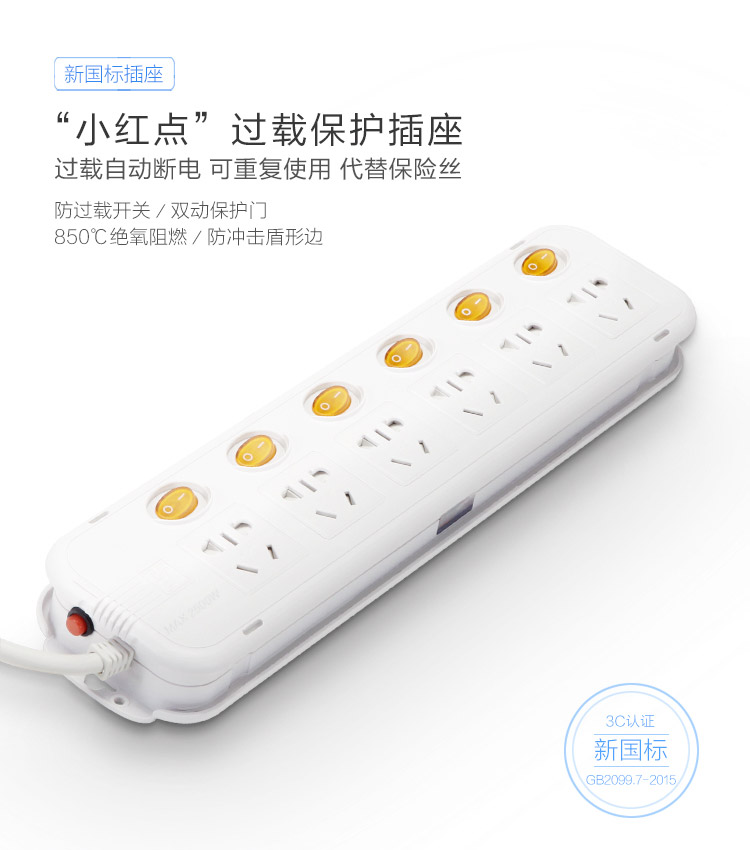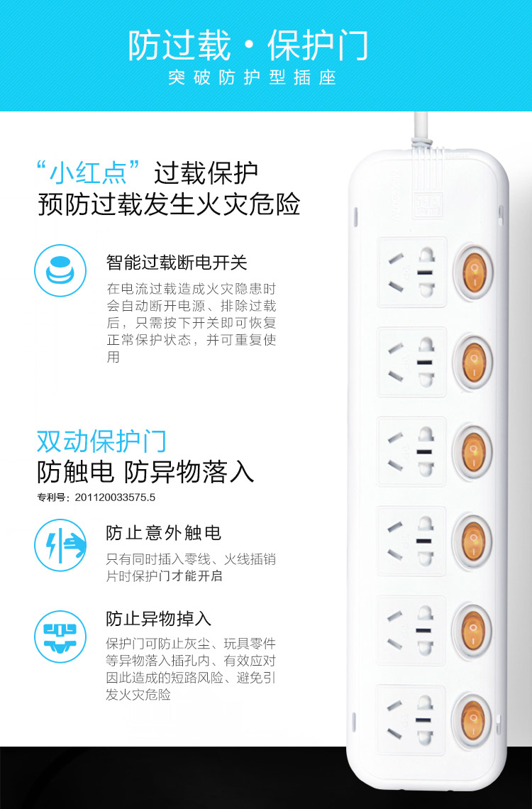 突破插座 TZ-T6K6 5米6開6位插線板 單位:個(gè)