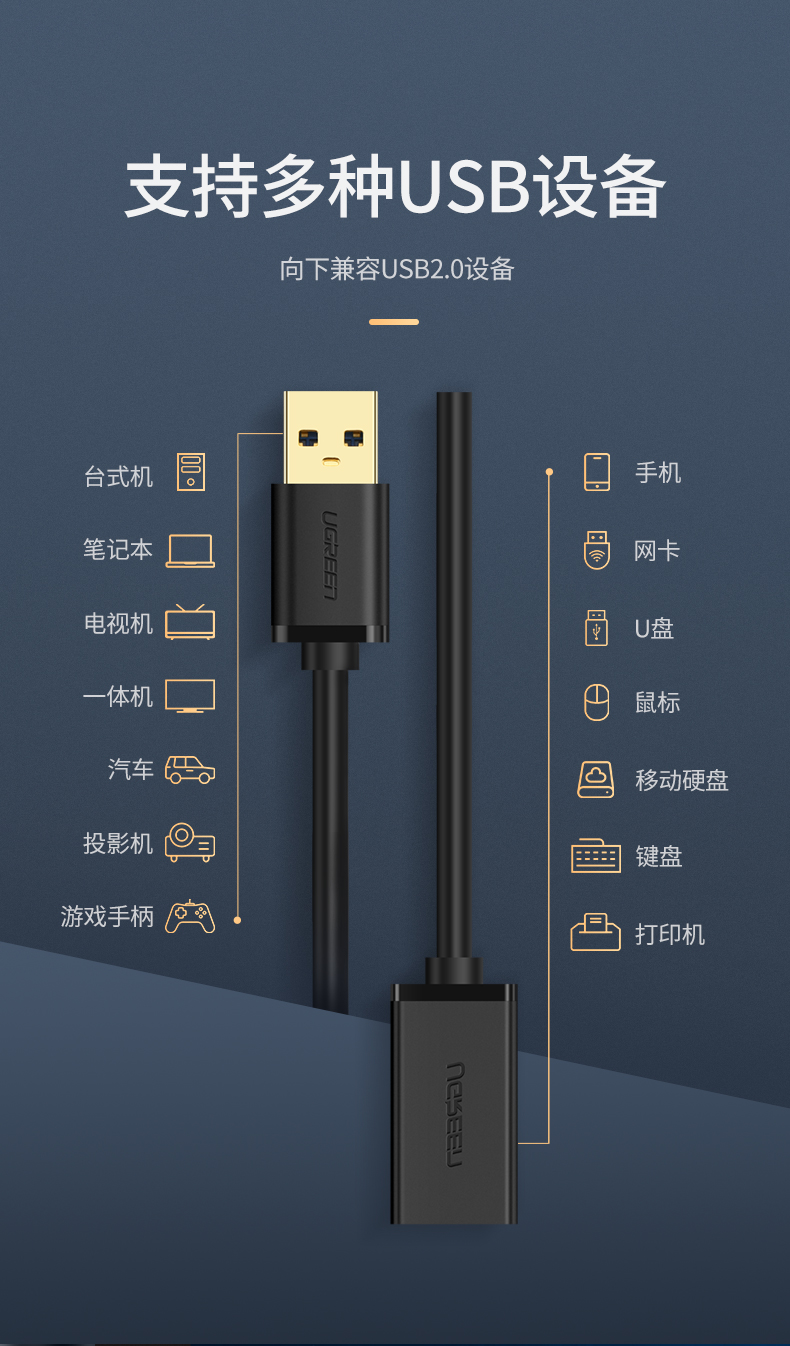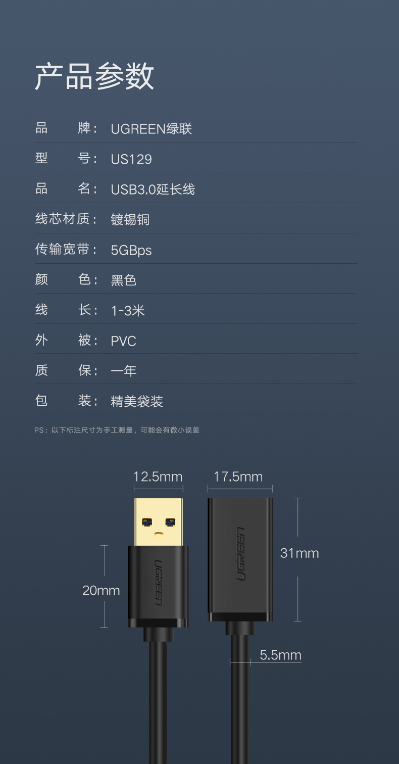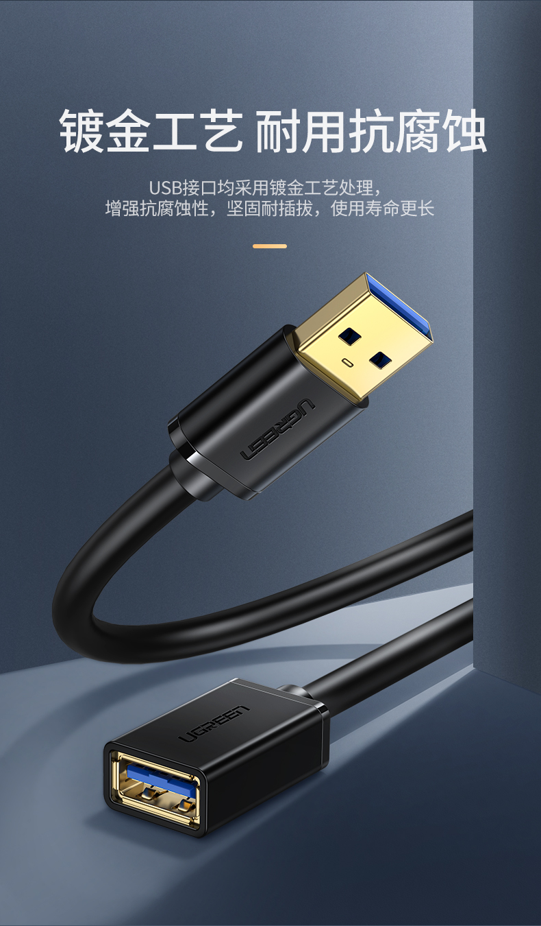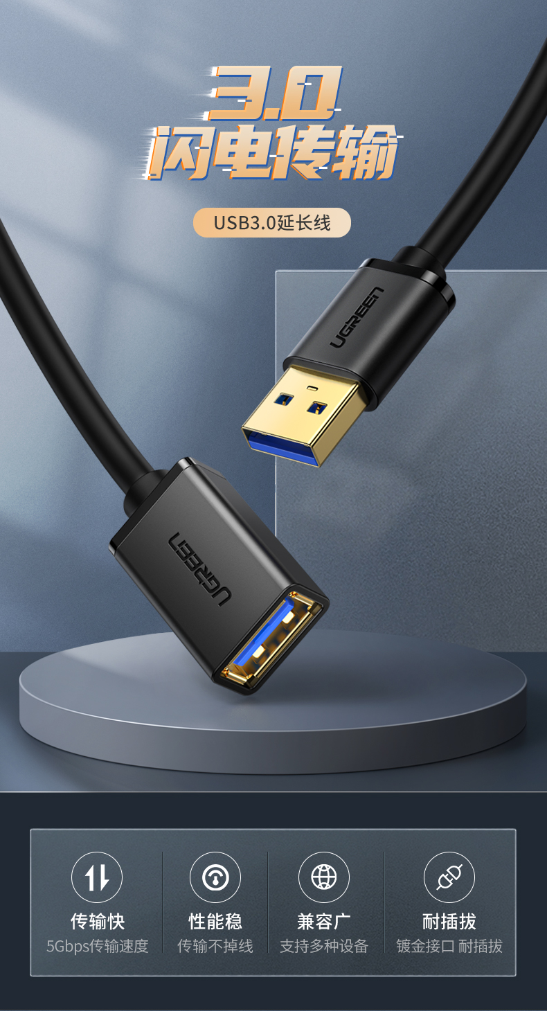 綠聯(lián) US129 USB3.0延長線公對母鍍金頭 高速傳輸數(shù)據(jù)連接線 3米 黑色 單位:根