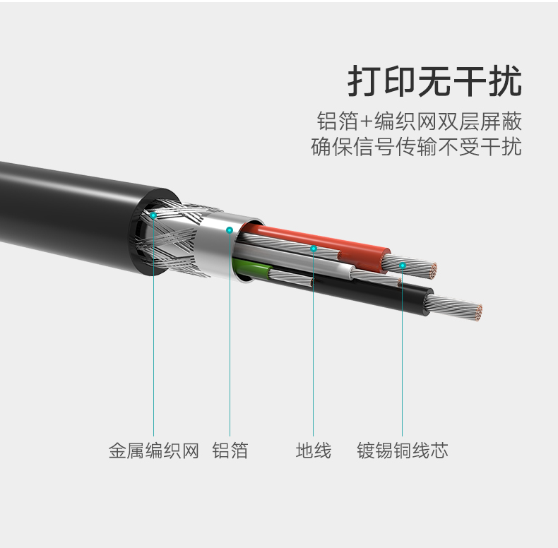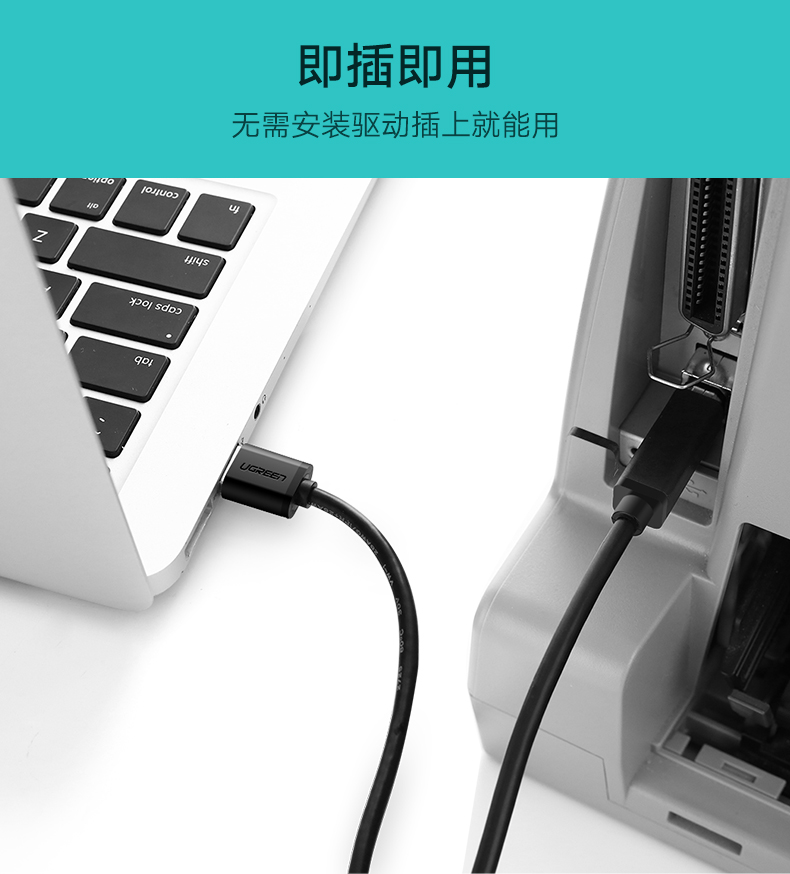 綠聯(lián) US135 USB2.0高速打印機數(shù)據(jù)線方口連接線鍍金接頭A公對B公 3米 黑色 單位:根