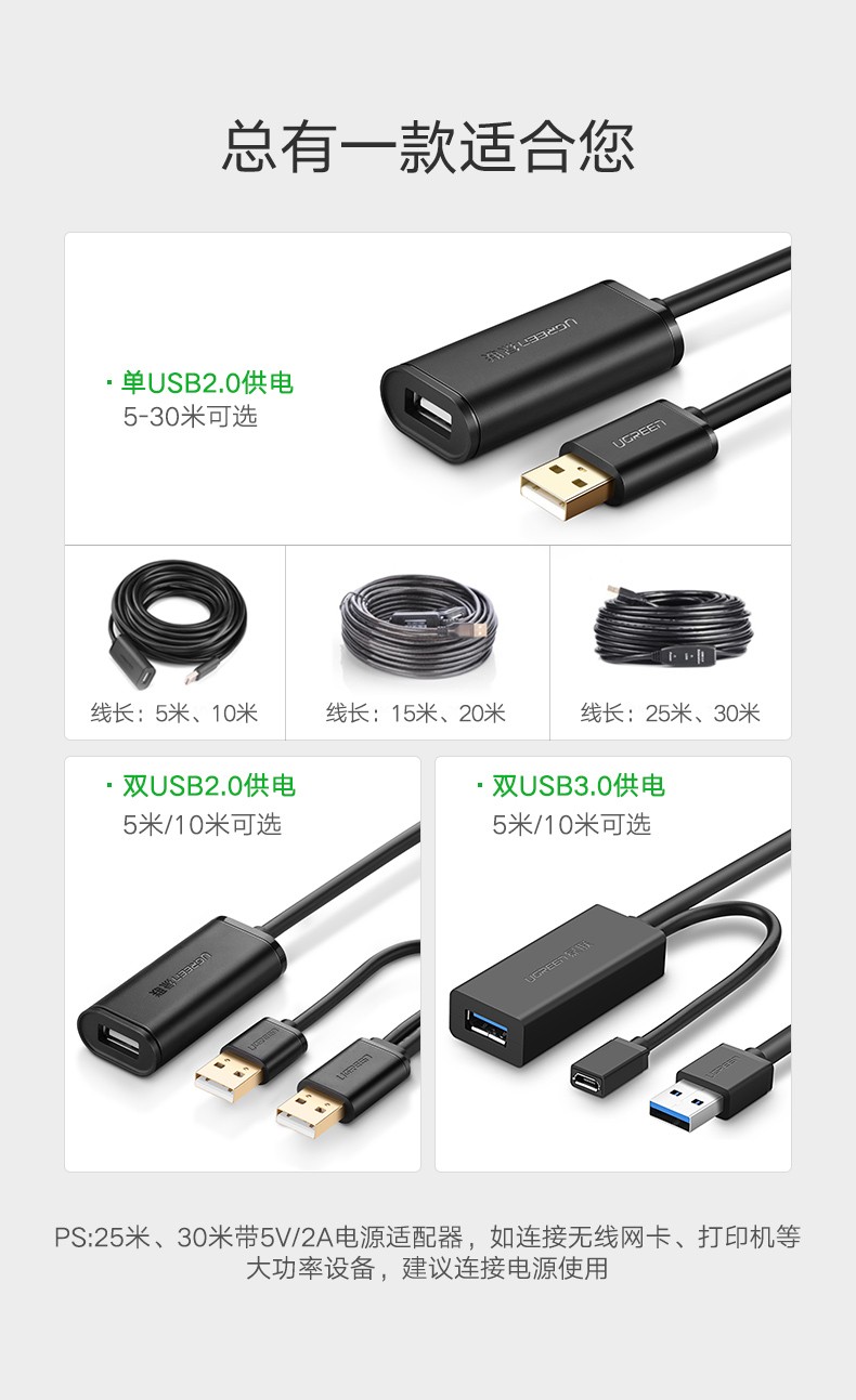 綠聯(lián) US121 USB2.0延長線公對(duì)母數(shù)據(jù)線 30米 黑色 單位:根