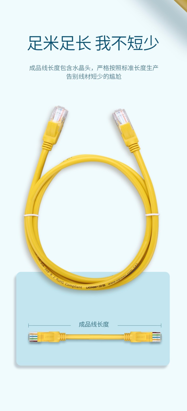 綠聯(lián)網(wǎng)線 NW103超五類網(wǎng)線RJ45百兆八芯雙絞非屏蔽網(wǎng)絡(luò)跳線 20米 黃色 單位:根