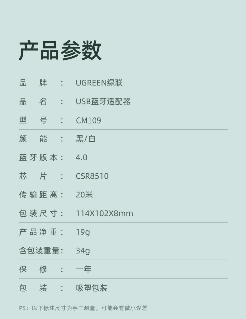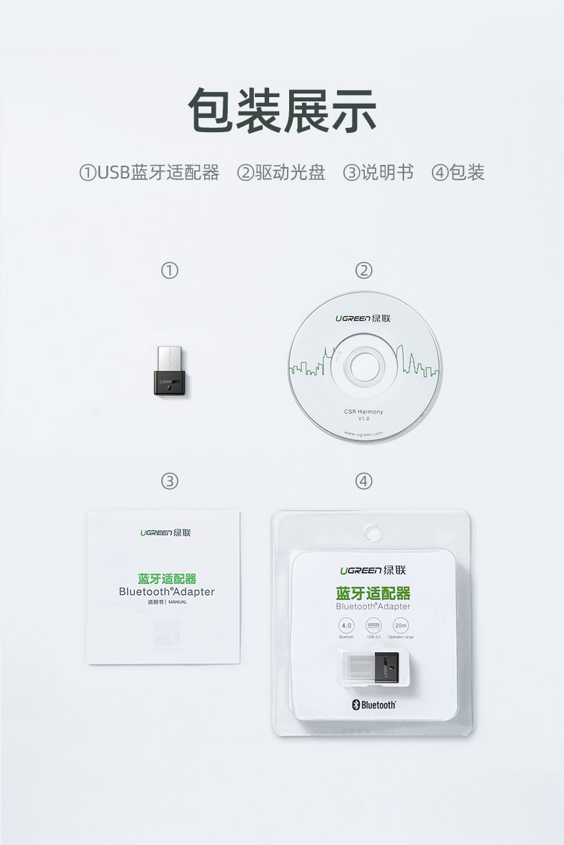 綠聯(lián) CM109 USB藍(lán)牙適配器4.0版接收器 白色 單位:個(gè)