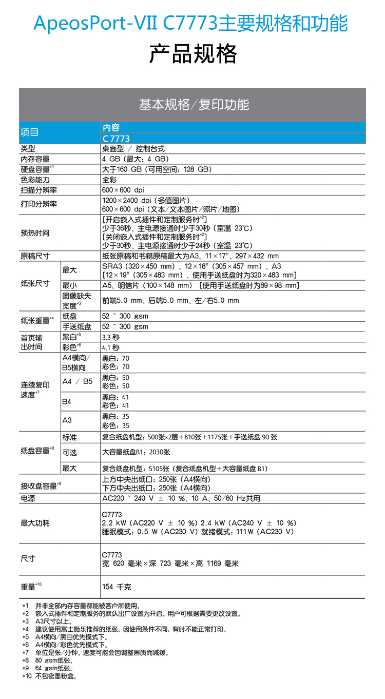 富士施樂復(fù)印機 ApeosPort-VII C7773 CPS SC 彩色激光復(fù)印機 單位:臺