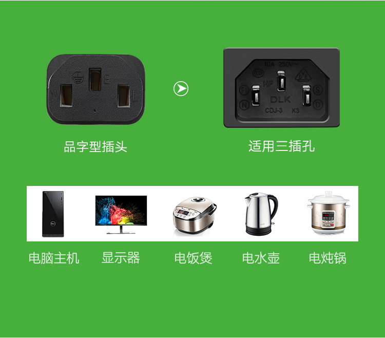 綠聯(lián) CD133 電腦主機(jī)電源線國標(biāo)三孔品字尾通用 1.5米 黑色 單位:個(gè)